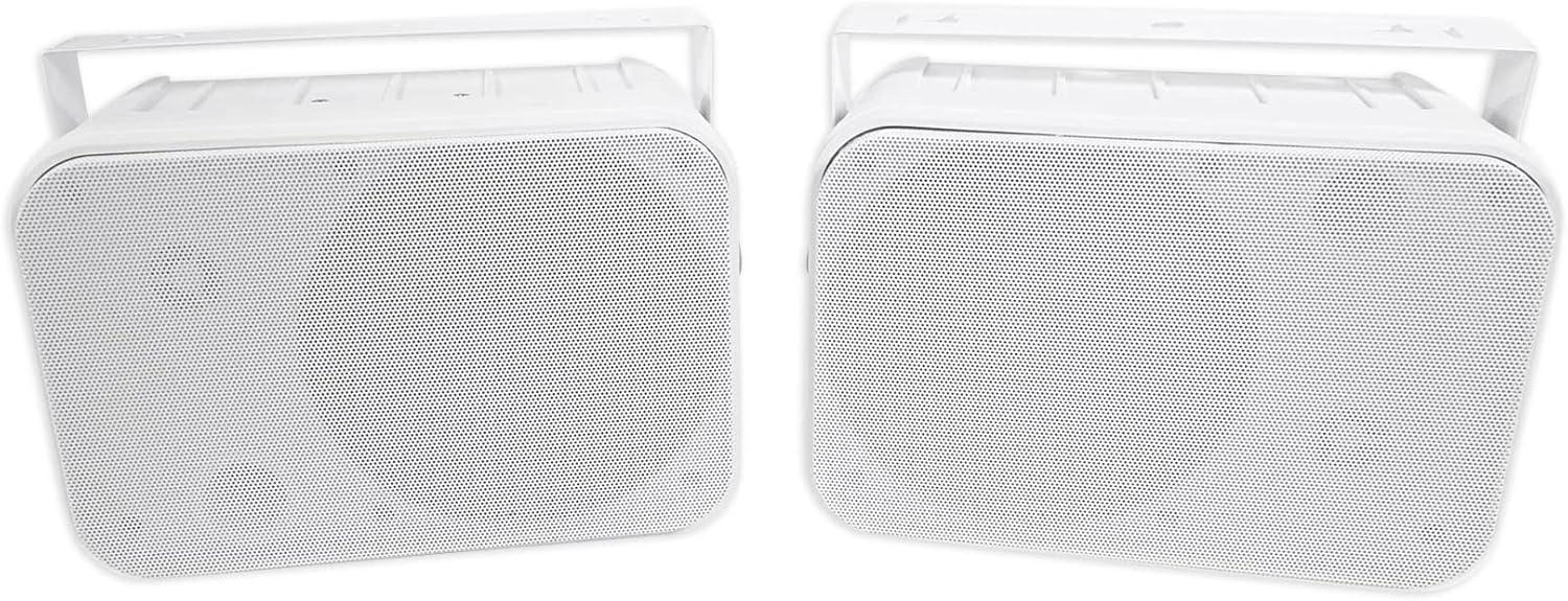 Pair of RockvilIe HP65S-8 6.5 White 500 Watt Outdoor / Indoor Home Theater Speakers with Swivel Bracket. Peak Power Handling: 500 Watts (per pair). RMS Power Handling: 160 Watts (per pair). IPX44 rated to withstand, rain, wind, etc. Stainless steel grill will not rust. Polypropylene Cone. Rubber Surrounds. 1 Aluminum Voice Coils. 6.5 Woofer. Mylar Dome Tweeters. 20 oz. Ferrite Magnet. High Quality Spring Loaded Push Terminals. Completely Waterproof. Tough ABS Construction