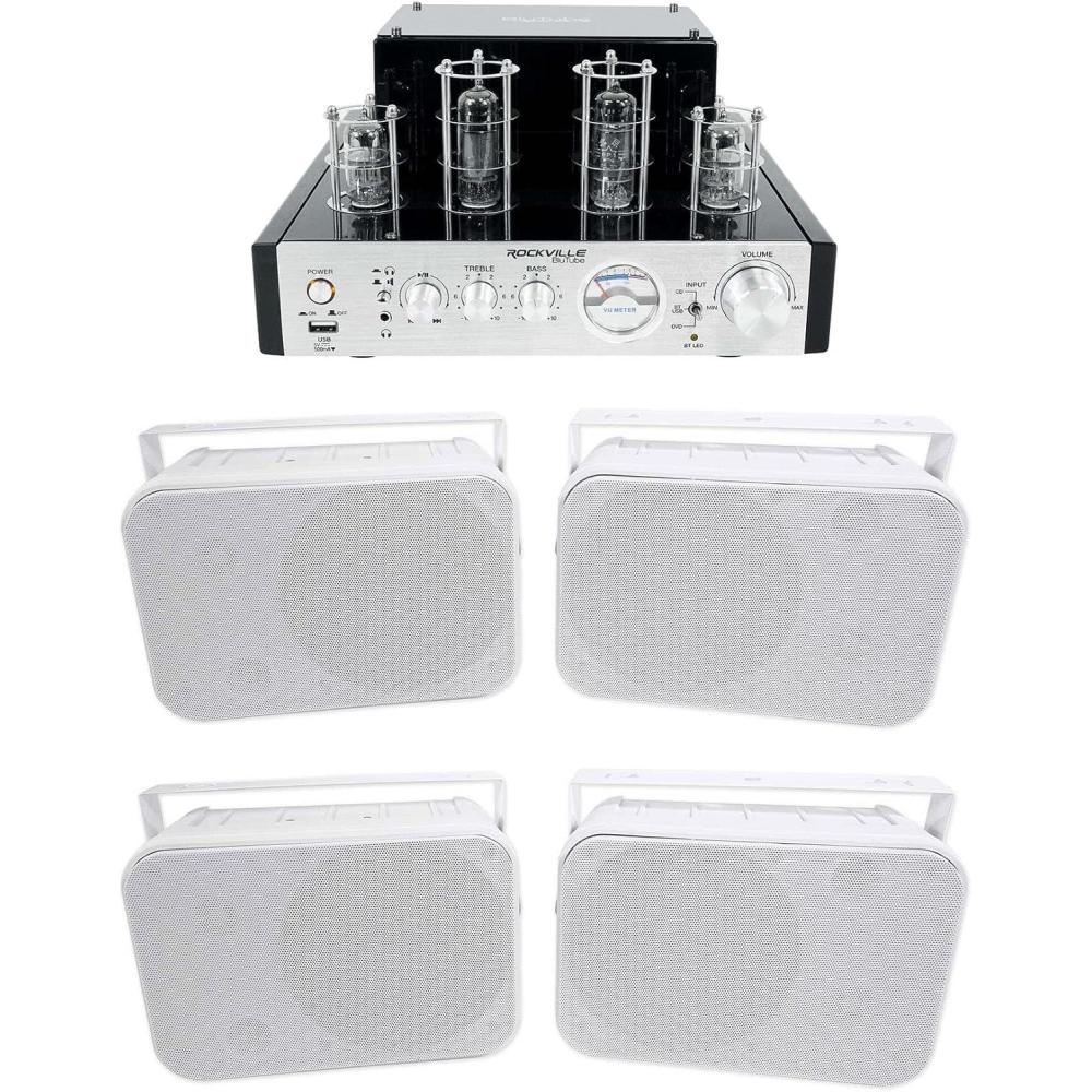 Package Includes: (1) RockvilIe BluTube 70w Tube Amplifier/Home Theater Stereo Receiver w/ Bluetooth. (2) Pairs of RockvilIe HP65S-8 6.5″ Outdoor/Indoor Home Theater Speakers w/Swivel Bracket. Includes: Tube Amplifier / Receiver. 5 Foot RCA to 3.5MM cable. 5.5 Foot Power cable. Owners manual / Warranty card. Features of BluTube: RockvilIe BluTube Audiophile grade tube amplifier with bluetooth. 25 watts x 2 RMS @ 8 ohm. 35 watts x 2 RMS @ 4 ohm