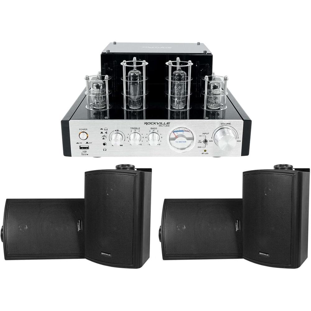 Package Includes: (1) Rockville BluTube LED 70w Bluetooth Tube Amplifier/Home Stereo Receiver in Black. (2) Pair of Rockville HP5S-8 BK Black 5.25″ Outdoor/Indoor 8-Ohm Wall Mount Home Speakers