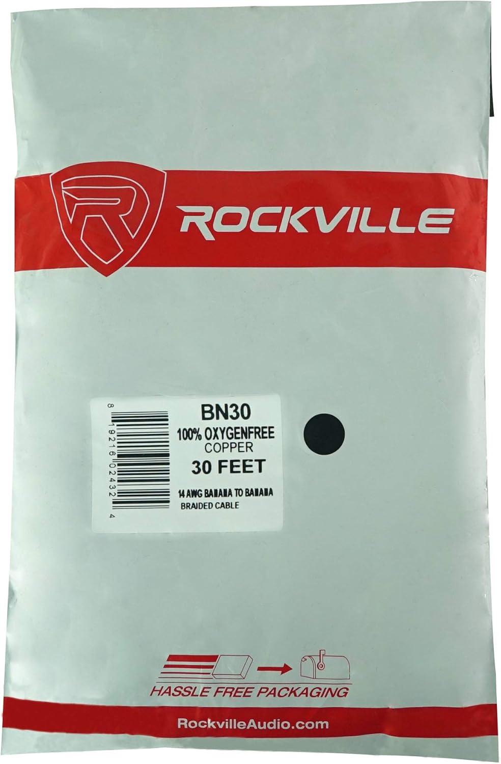 Rockville BN20 20′ 14 AWG 100% OFC Copper Banana to Banana Cable, Braided Jacket, Tangle-Free, for Home Audio and Pro DJs(30 Foot)