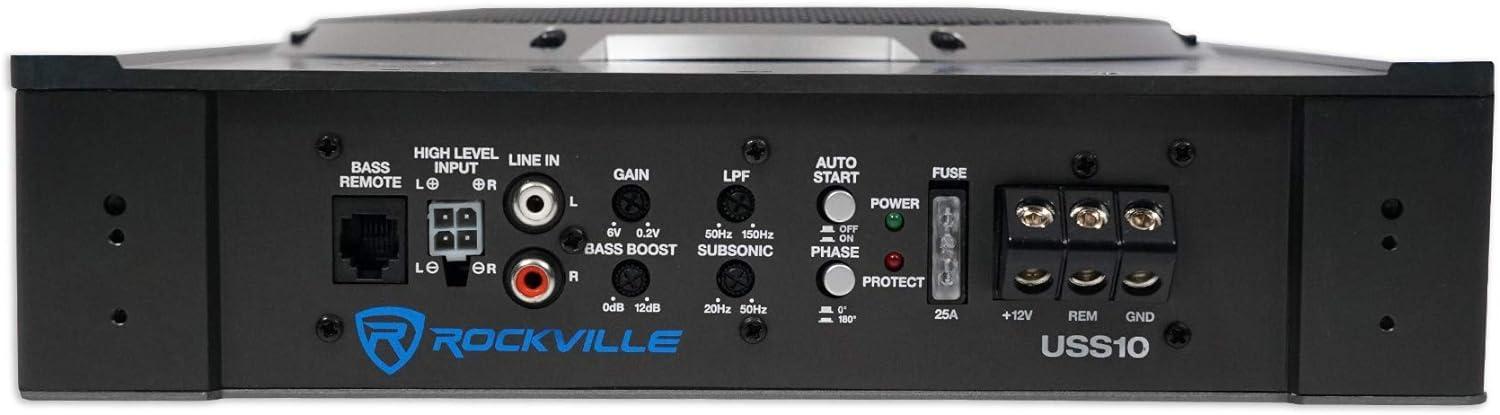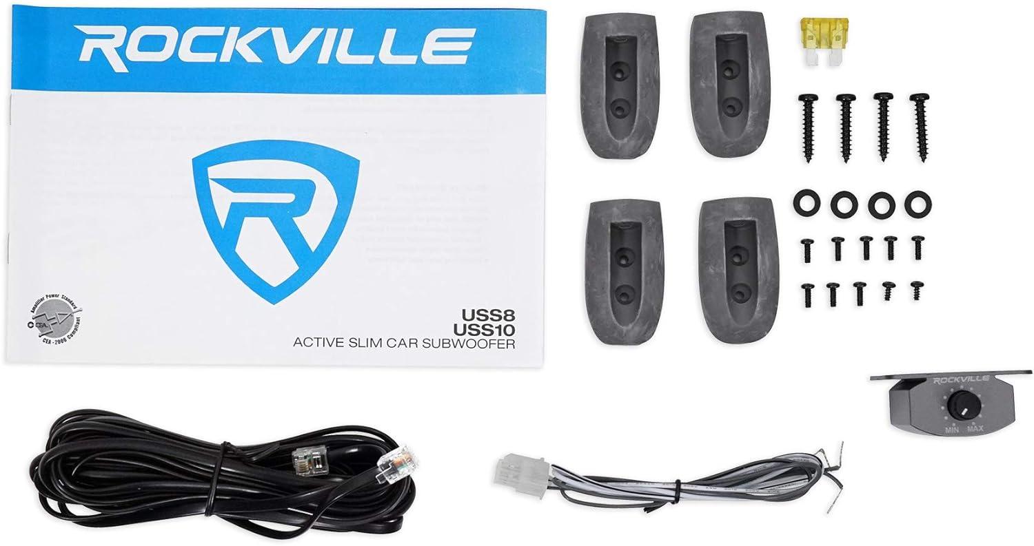 Package Includes: (1) Rockville USS10 10″ 800W Slim Under-Seat Active Powered Car/Truck Subwoofer, (1) Rockville 10 Gauge Amp Installation Wire Kit with ANL Fuse Holder and 100% Copper RCA.