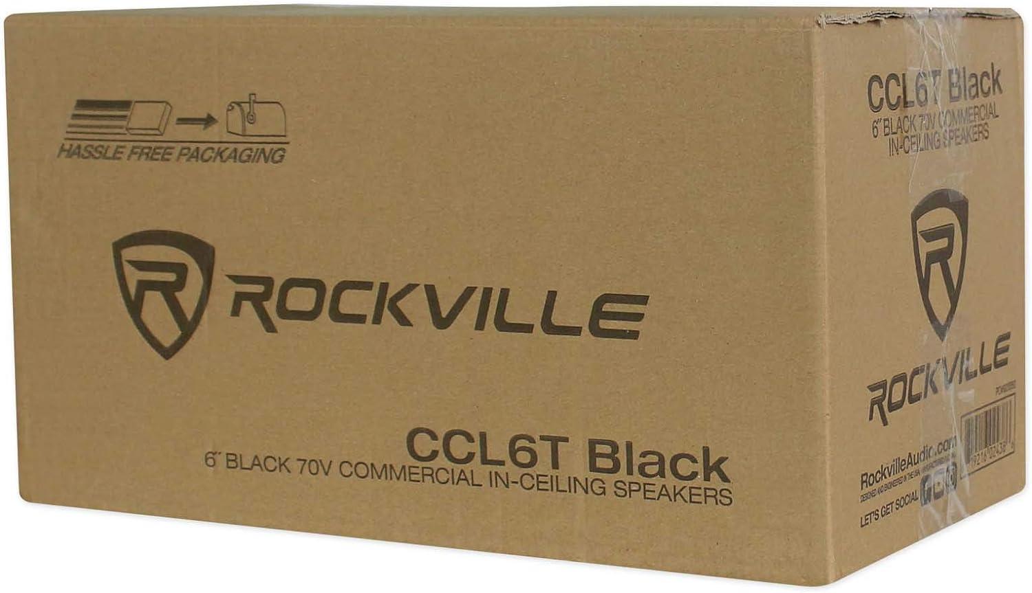 Rockville CCL6T (4) 70V 6″ Commercial Ceiling Speakers, Paintable Grills, Easy Install, Custom Power Taps, Perfect for Restaurants/Offices(Black)