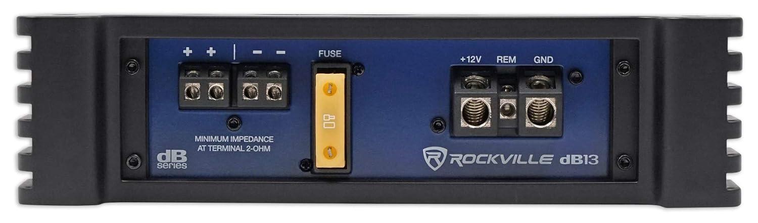 Package Includes: (1) Rockville dB13 3000 Watt Peak/750w Dyno-Certified RMS Mono 2 Ohm Amplifier Car Amp, (1) Rockville RWK41 4 Gauge Complete Car Amp Wiring Installation Wire Kit w/RCA's
