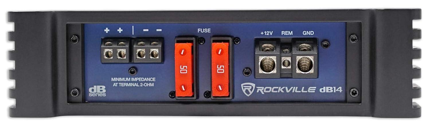 Package Includes: (1) Rockville dB14 4000 Watt/1000 Watts RMS Mono Class D 2 Ohm Amplifier Car Audio Amp, (1) Rockville RWK4CU 4 AWG Gauge 100% Copper Complete Amp Installation Wire Kit OFC. This two-piece bundle pairs high-output subwoofer power with a true-copper wiring kit engineered for ultra-low resistance, clean signal transfer, and dependable current delivery for serious daily systems and competition builds.