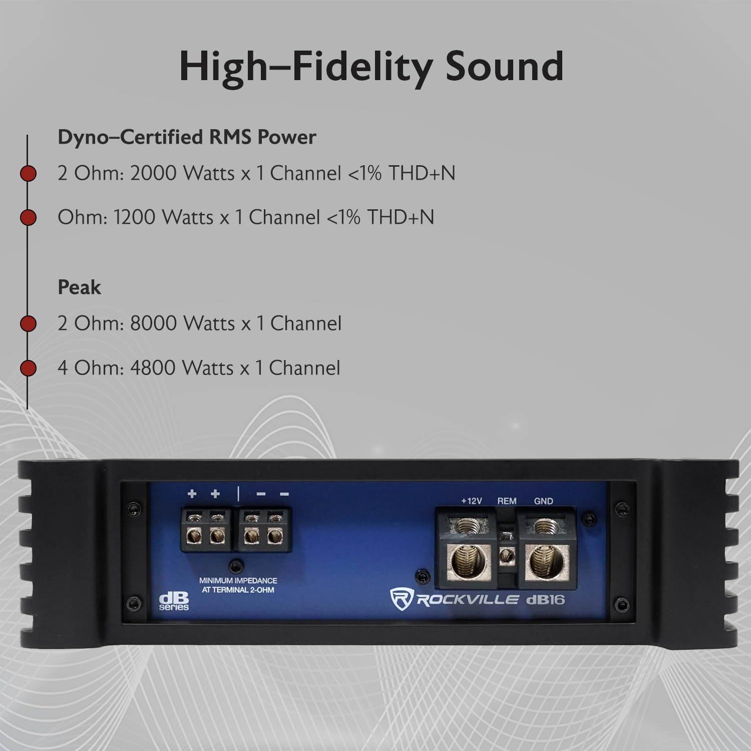 High Power Output: Delivers 8000W peak power and 2000W RMS at 2 ohms, providing robust and clear audio for your car's subwoofer system.