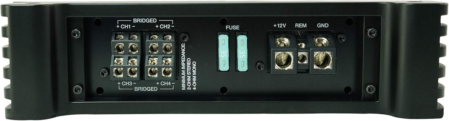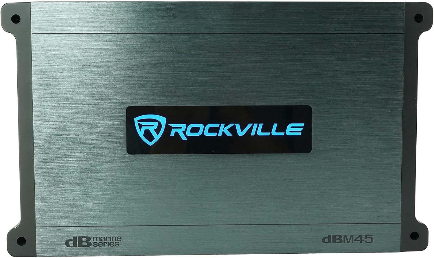 The Rockville DBM45 4-Channel Marine Amplifier delivers premium power and durability for boat audio systems. With 2000W peak and 500W Dyno-Certified RMS output, it drives speakers and subwoofers with clarity and impact. Built for harsh marine environments, it features a waterproof conformal-coated PCB, silicone terminal covers, rustproof aluminum heat sink, and stainless steel hardware for long-lasting reliability.