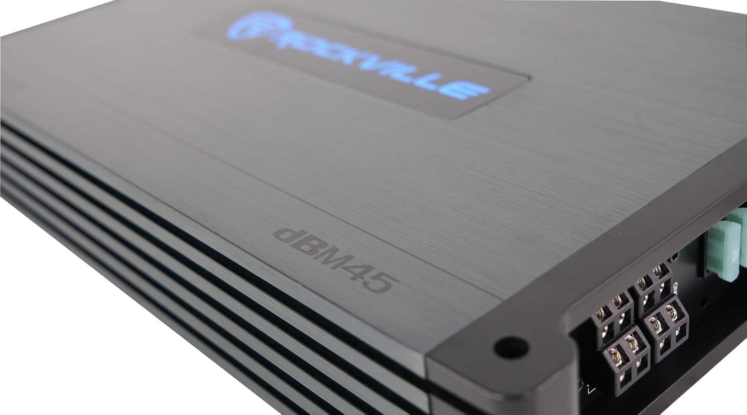 Its advanced sound controls include a fully adjustable crossover with bandpass and subsonic filters, 12dB bass EQ, and bridgeable channels to fine-tune your setup for subs, mids, or full-range speakers. The DBM45 offers a wide frequency response (10Hz-50kHz), low THD (<0.05%), and high S/N ratio (>90dB).