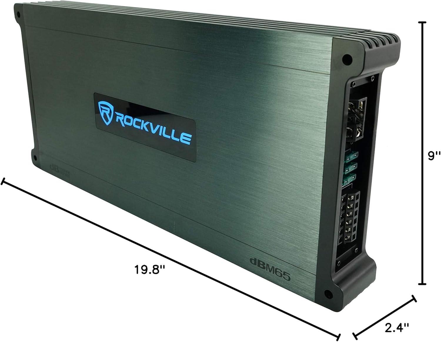 Package Includes: (1) RockvilIe DBM65 6-Channel 2600w CEA Rated Marine/Boat Amplifier+Silicone Covers. (2) RockvilIe MRCA25 25 Foot Twisted Pair Marine RCA Cable 100% Copper, Split Pin. (1)RockvilIe RMWK4 4 AWG Gauge Waterproof Marine Amplifier/Amp Install Wire Kit. What's in the Box: dBM65 Amplifier. Bass remote. PA Microphone. Birth sheet with Tested Power. Mounting Screws. Warranty Card. Owners Manual. Some Popular Configurations: 4 full range speakers and 1 or 2 subwoofers