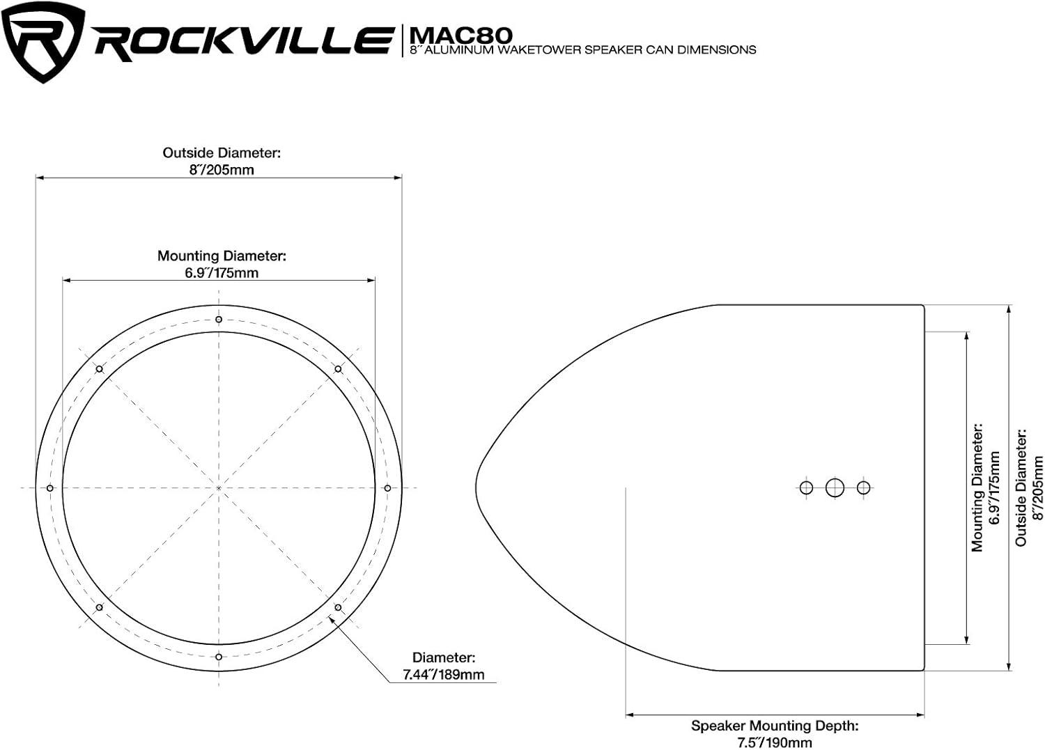Rockville is proud to introduce our all new line of aluminum wakeboard cans. The DMAC80B features double pod design which allows you to mount two 8” speakers. It includes our rugged universal aluminum clamp for easy installation to any wakeboard tower pole measuring from 2″ to 2.5″ diameter. Six precision molded high impact rubber inserts guarantee fitment on towers from 2” to 2.5”. Our clamp inserts are precision-fitted to sit perfectly inside the metal clamps. The speaker terminals are safely enclosed inside the waterproof speaker canister.