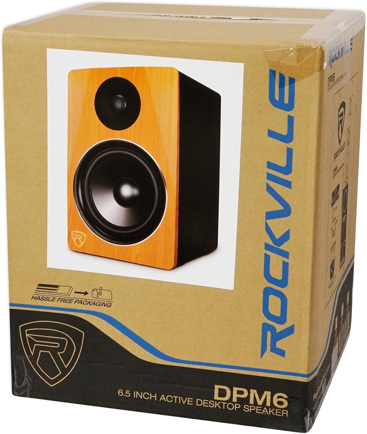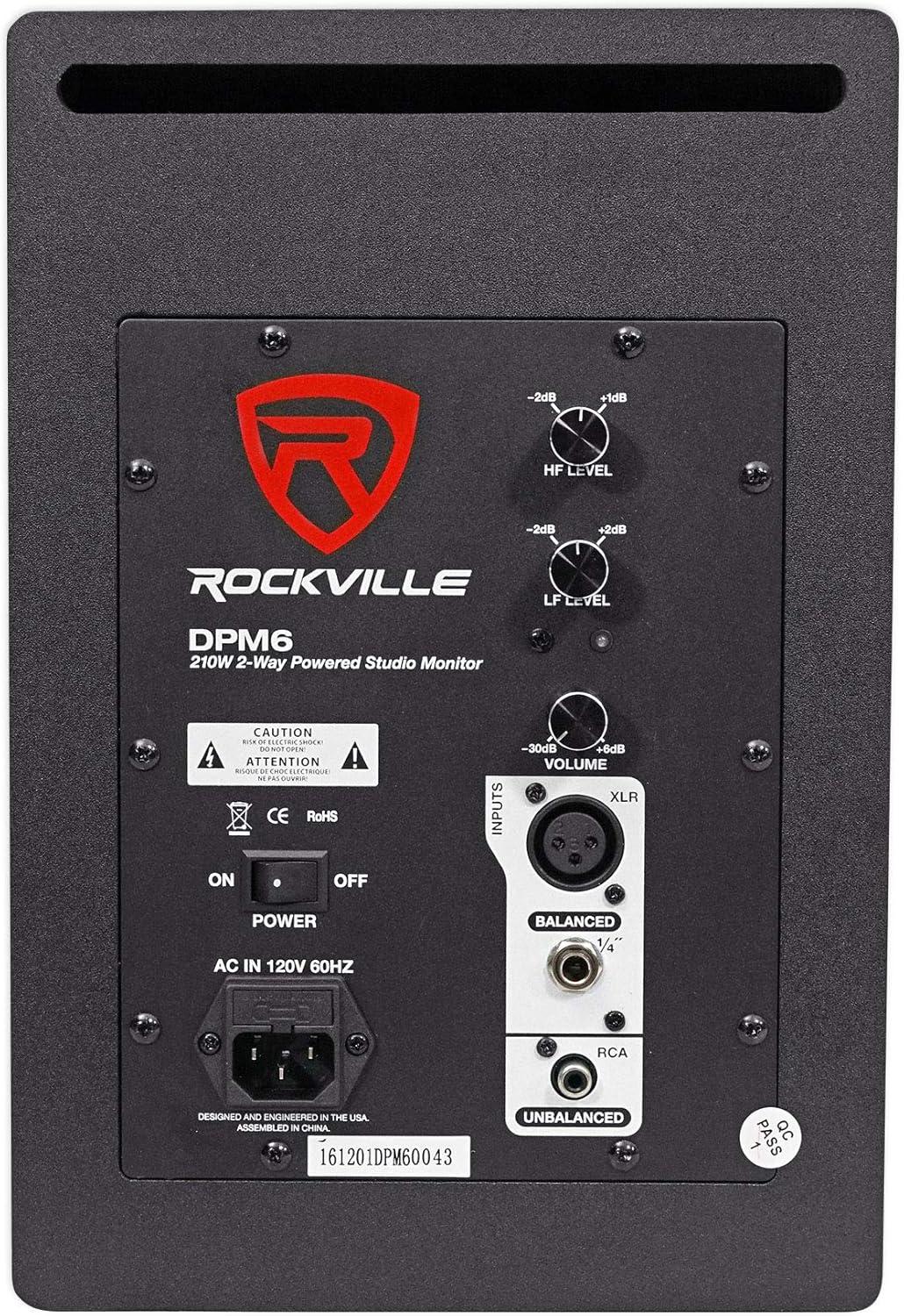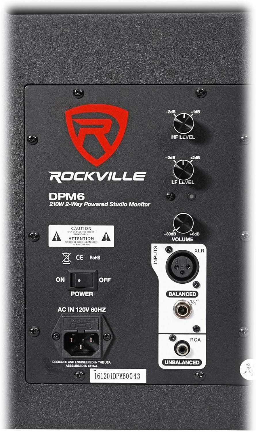 Rockville DPM6B 6.5″ 2-Way 210W Active/Powered Studio Monitor Speaker in Black (sold individually). Peak Power: 210 Watt. RMS Power: 105 Watt. Bi-Amped: 35 Watts for highs, and 70 watts for the lows. Enclosure is made of top quality MDF wood.. The enclosure is built with the perfect amount of air space to maximize sound quality for a studio. The port is built to the perfect spec to enhance the sound. Auto-Switching Power Supply.