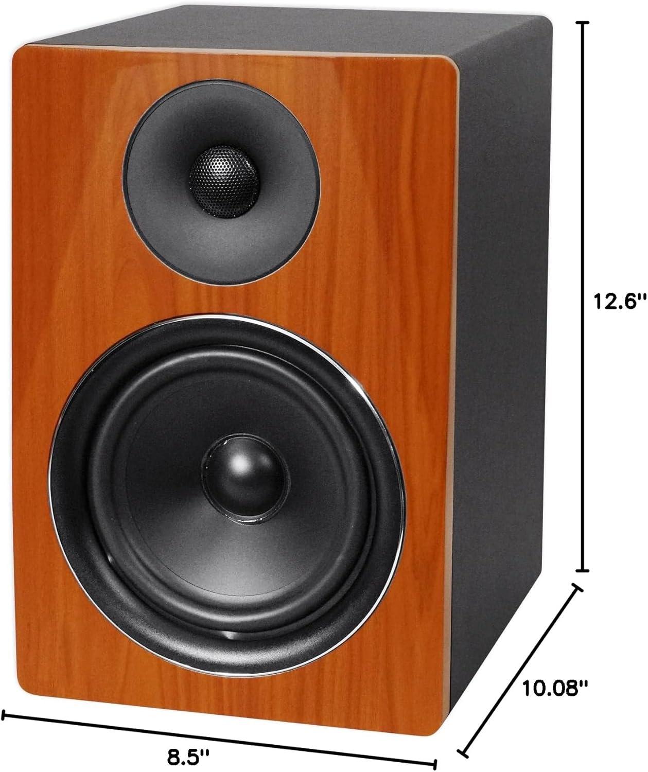 Frequency Response: 50Hz – 20kHz. 210 Watts peak output. 105 Watt RMS output. Input voltage: 120V. Components: 1.5″ neodymium silk dome tweeter and 6.5″ woofer with rubber surrounds and polypropylene cone. Product Dimensions in Inches (Single): (W*H*D) 8.5” x 12.6'' x 10.08''. Shipping Dimensions in Inches (For pair boxed): (W*H*D) 13.78'' x 16.38'' x 12.2''. Net Weight: 15.44 LBS. Shipping Weight: 18.75 LBS. Includes signal cable and power cord. Input Impedance (Ohms): 10 K Ohm Balanced.