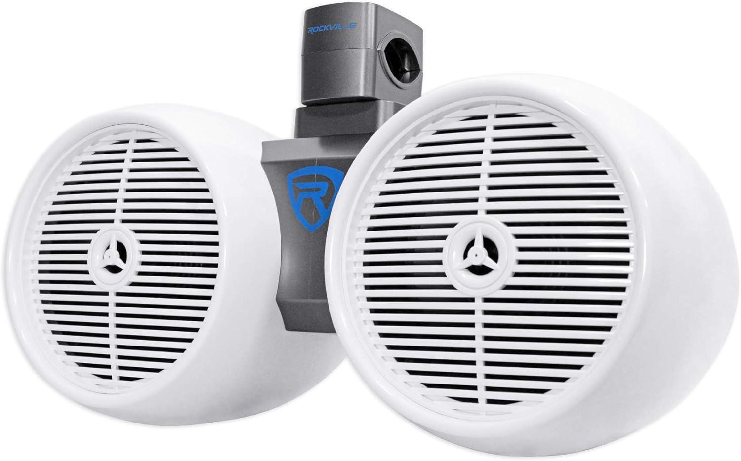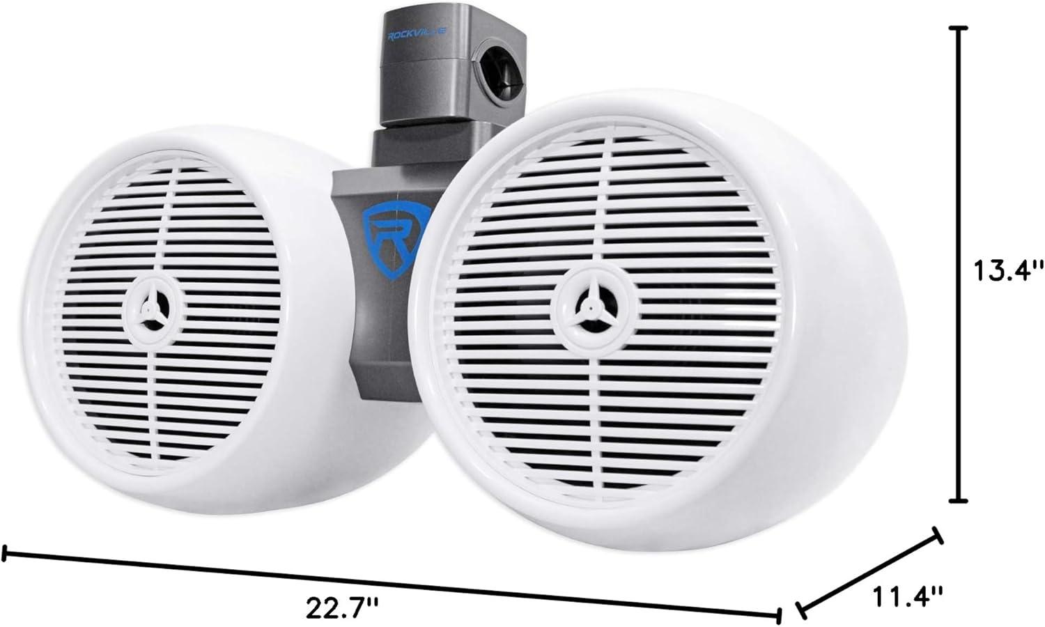 Rockville DWB80B Dual 8″ 800W Marine Wakeboard Tower Speakers, 4 Ohm, ABS Enclosure, Titanium Tweeter, 360 Degree Swivel Mount, Black, for Boats, Jeeps, ATVs & UTVs(White)