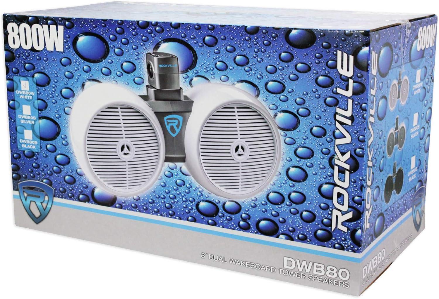 Rockville DWB80B Dual 8" 800W Marine Wakeboard Tower Speakers, 4 Ohm, ABS Enclosure, Titanium Tweeter, 360 Degree Swivel Mount, Black, for Boats, Jeeps, ATVs & UTVs(White)