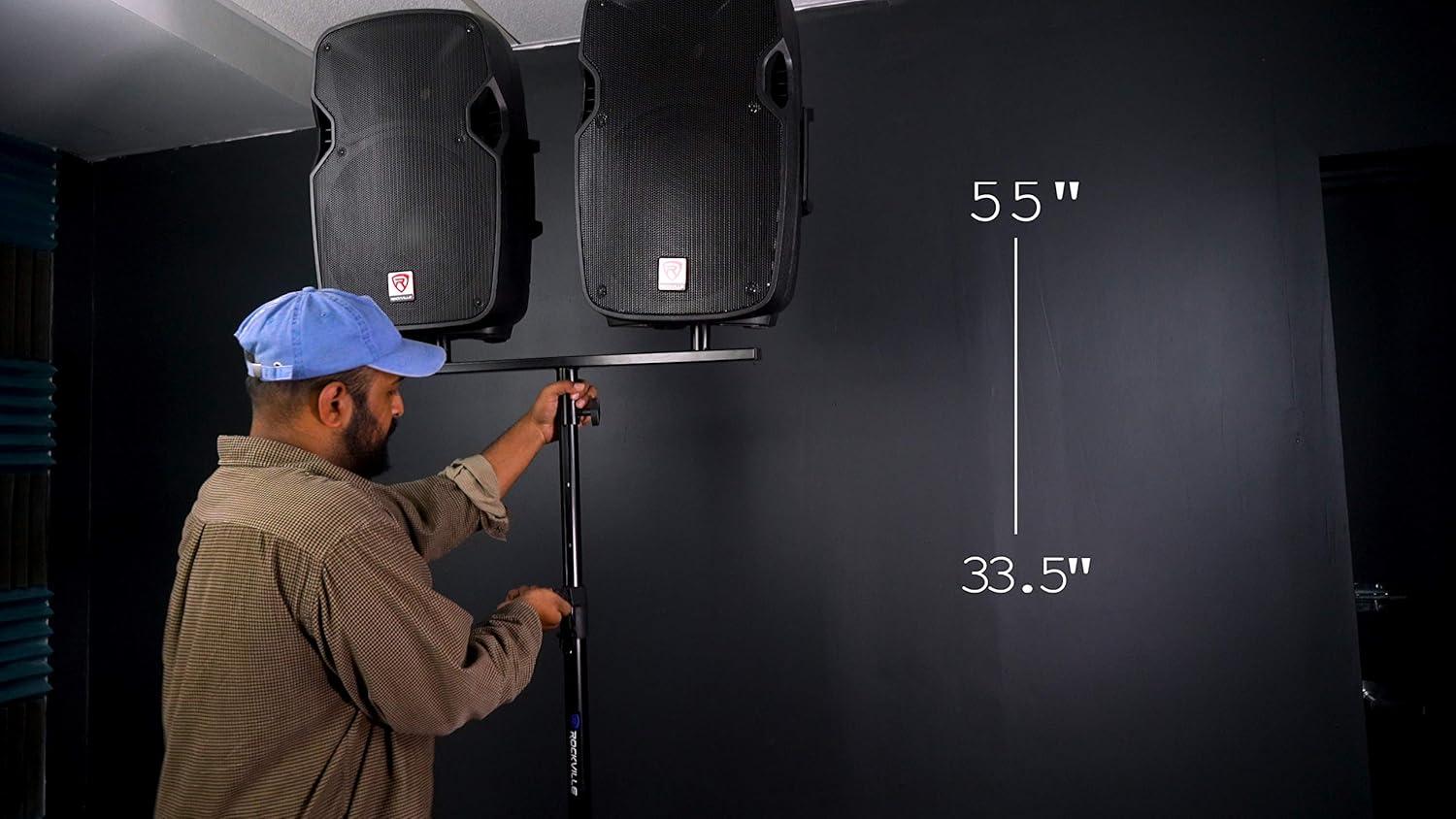 AIR-ASSIST LIFT TECHNOLOGY: Adjusts height from 33.5″ to 55″ with minimal effort, using air-assist to raise or lower heavy speakers smoothly and safely