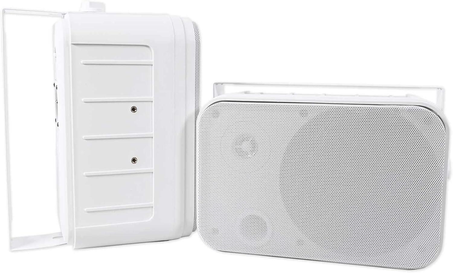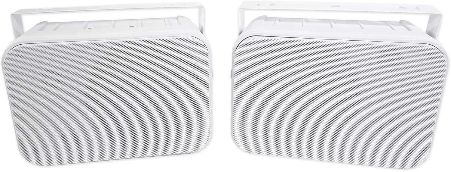 Durable Build & Easy Installation – Rugged ABS housing with rustproof stainless steel grills, plus swiveling metal mounting brackets and spring-loaded push terminals for secure mounting. Impedance: 4 Ohms. Frequency Response: 40Hz-20kHz. Dimensions: 10.6 x 7.1 x 6.2 in.