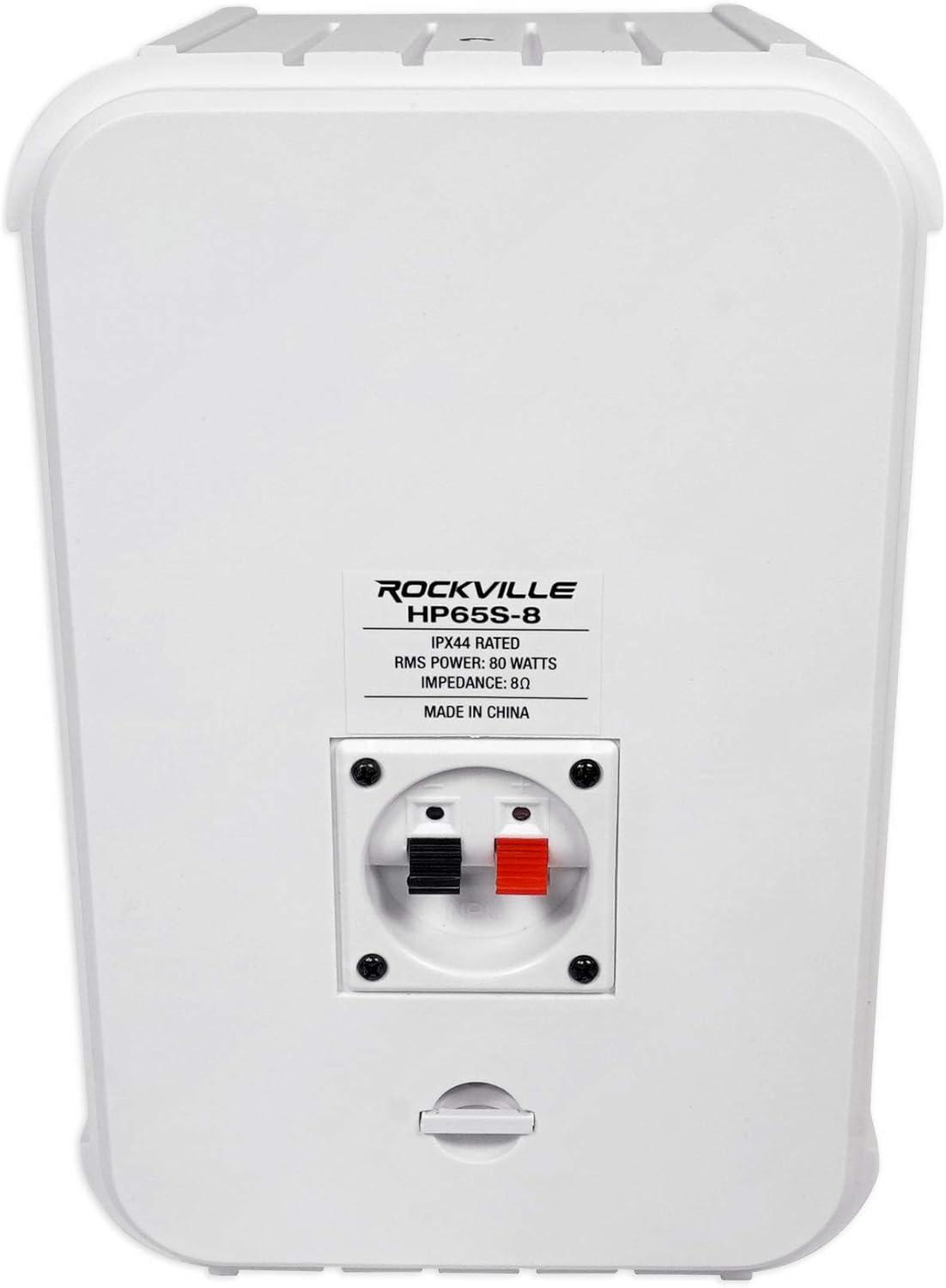 Rugged Weatherproof Build: Rockville HP65S-8 features heavy-duty ABS construction and an IPX44 rating to resist rain, mist, snow and wind. Rubber surrounds eliminate unwanted distortion and stainless steel grills resist rust. Designed for patios, large backyards, boats, gyms, hotels and indoor use, these speakers withstand outdoor environments while maintaining consistent performance and long-term reliability.