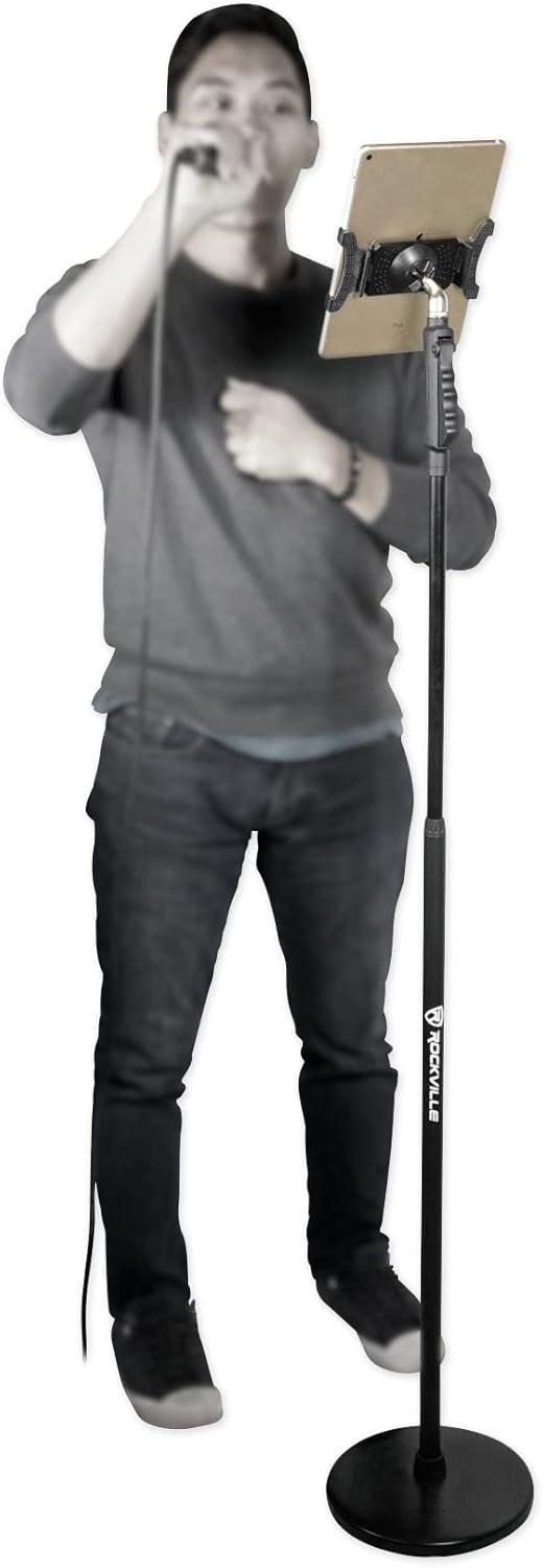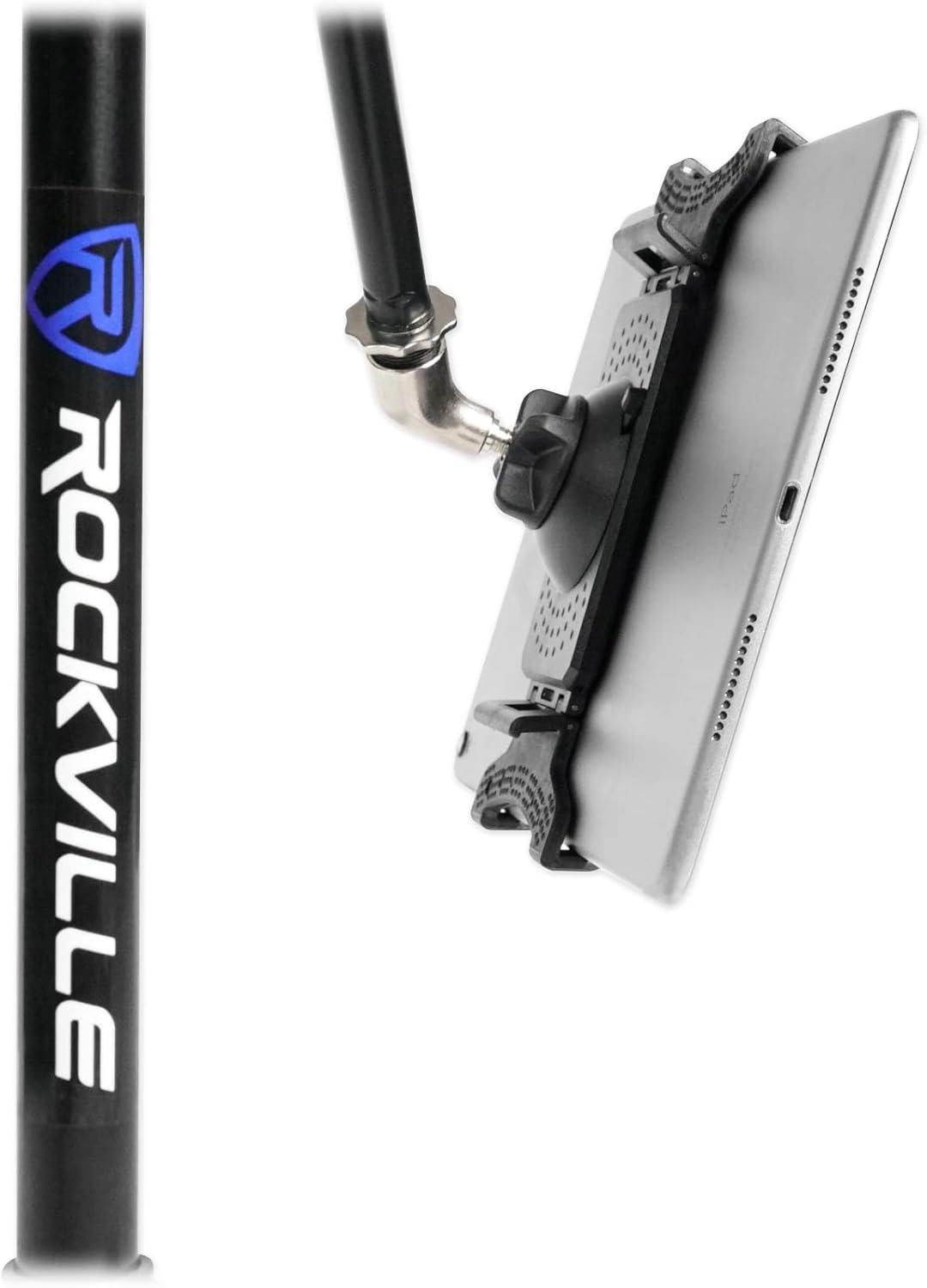 Rockville IPS22 Smartphone/Tablet Mount, Adjustable 4.7-12.9in Clamp, 360-Degree Rotation, Screw-in Mic Stand Design, Lightweight, Perfect for Musicians and Content Creators