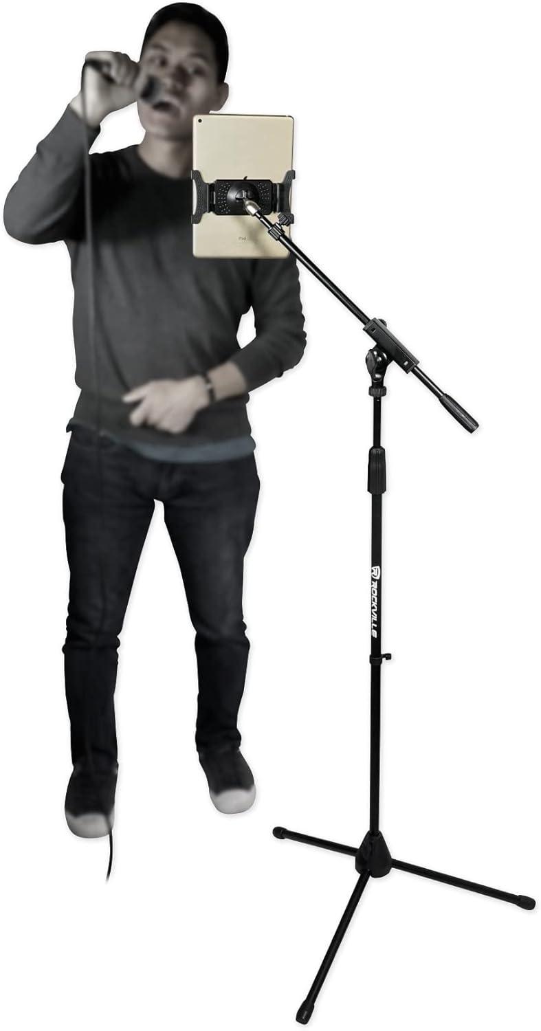 imageRockville IPS22 SmartphoneTablet Mount Adjustable 47129in Clamp 360Degree Rotation Screwin Mic Stand Design Lightweight Perfect for Musicians and Content Creators