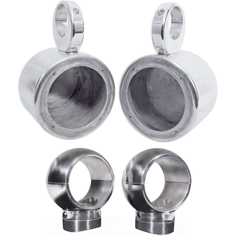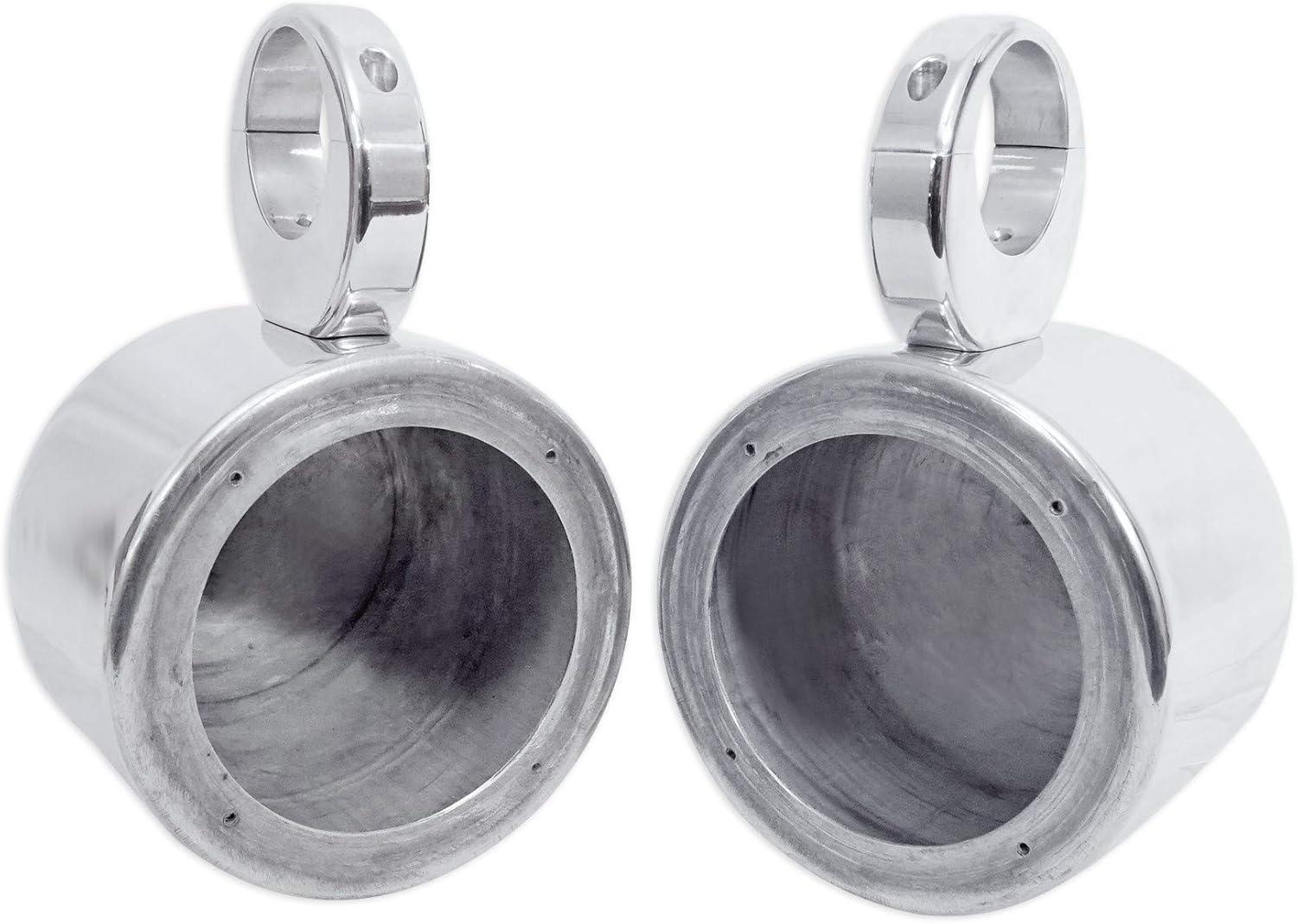 Package Includes: (1) Pair of Rockville MAC525S 5.25″ Polished Metal Marine Wakeboard Speaker Pod Enclosures, (1) Pair of MacSwivelS 360 Degree Rotation Swivel Clamp Mounts for Rockville Tower Pods.