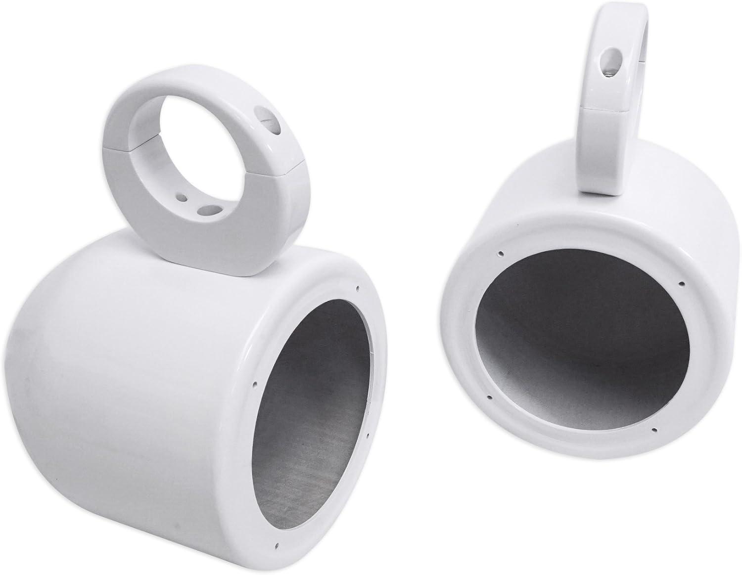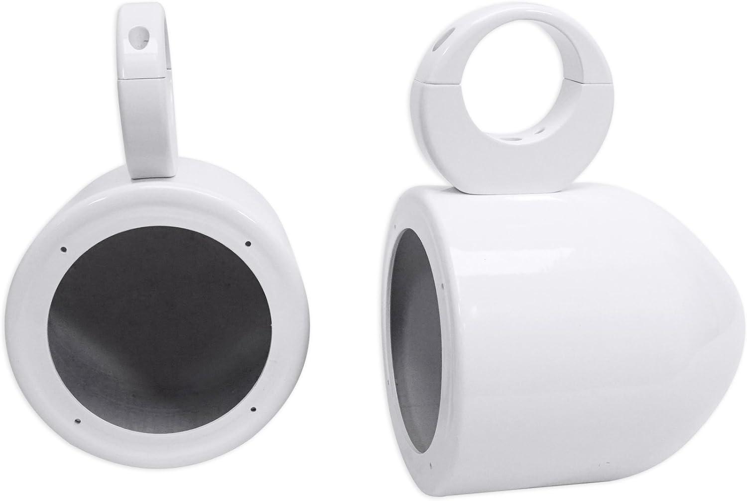 Features: Pair of RockvilIe MAC525W 5.25 white aluminum can wakeboard tower enclosures. Made of high quality 6061 aircraft grade aluminum. Beautiful white powder-coat finish. 100% waterproof and fully marinized against salt and fresh water conditions. Internally wired for clean installno exposed wires or terminals. High efficiency design features the perfect airspace for 6.5 speakers