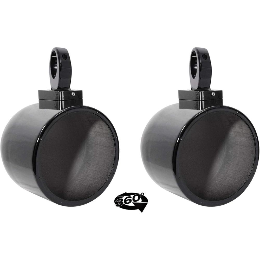 Package Includes: (1) Pair Rockville MAC80B 7.7″ Black Aluminum Wakeboard Tower Speaker Pod Enclosures, (1) Pair Rockville MAC360B 360° Degree Swivel Tower/Surface Mount Clamps for Rockville Wakeboards.
