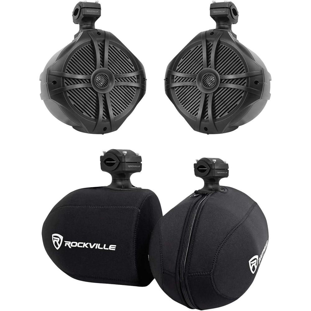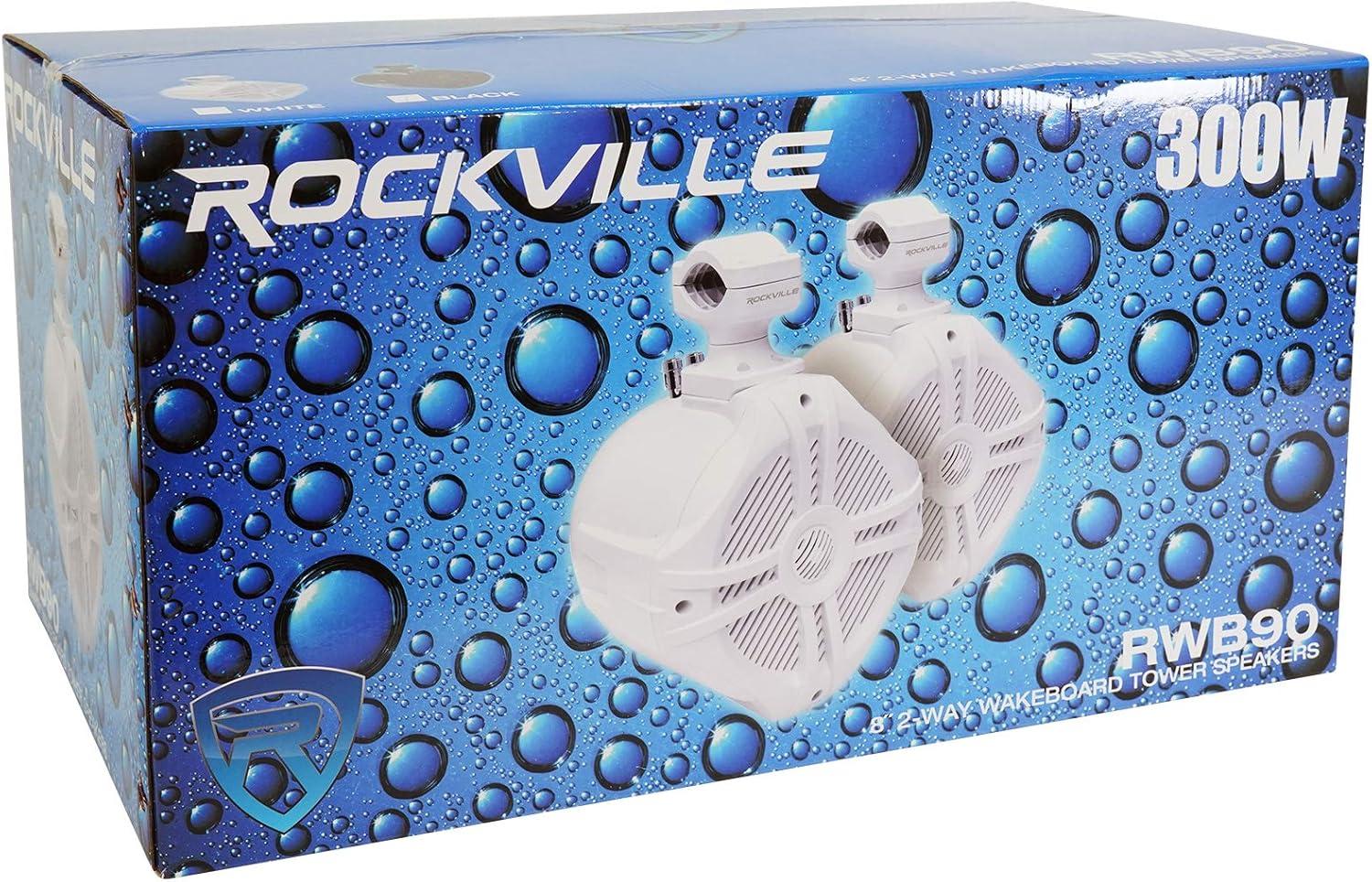 Package Includes: (1) Pair Rockville RWB90B Black 8″ 300W Marine Wakeboard 360° Swivel Tower Speakers, (1) Pair Rockville RWBC80 Neoprene Covers for 8″ Marine Wakeboard Tower Speakers