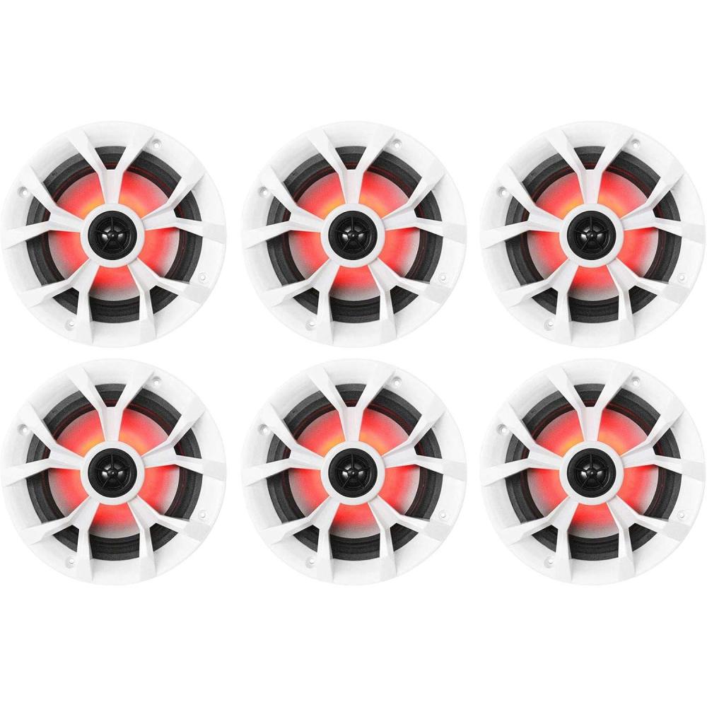 Rockville Marine Speaker Bundle: (6) RKL65MBW 6.5″ 700-Watt LED Speakers, Black/White Grilles, 6-Items