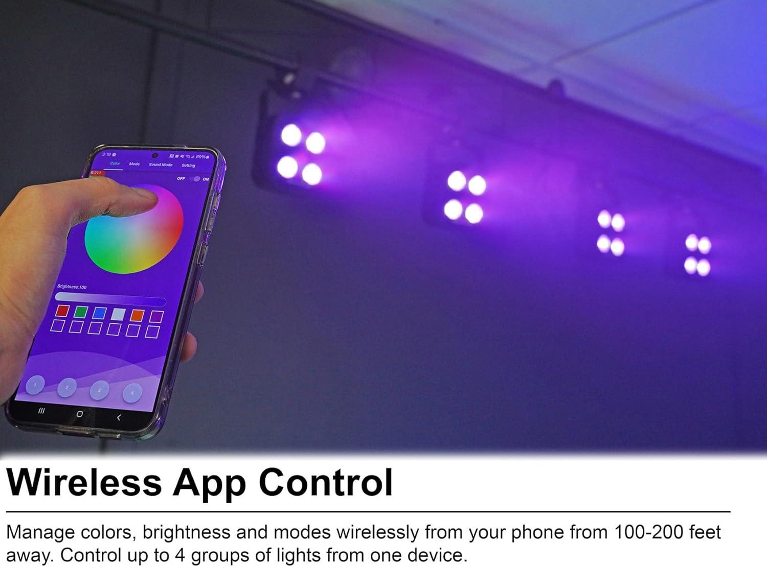 VERSATILE CONTROL OPTIONS: Manage up to 4 groups with the free iOS/Android app (100-200 ft range), redesigned IR remote with 48 colors, or wireless DMX for professional setups.