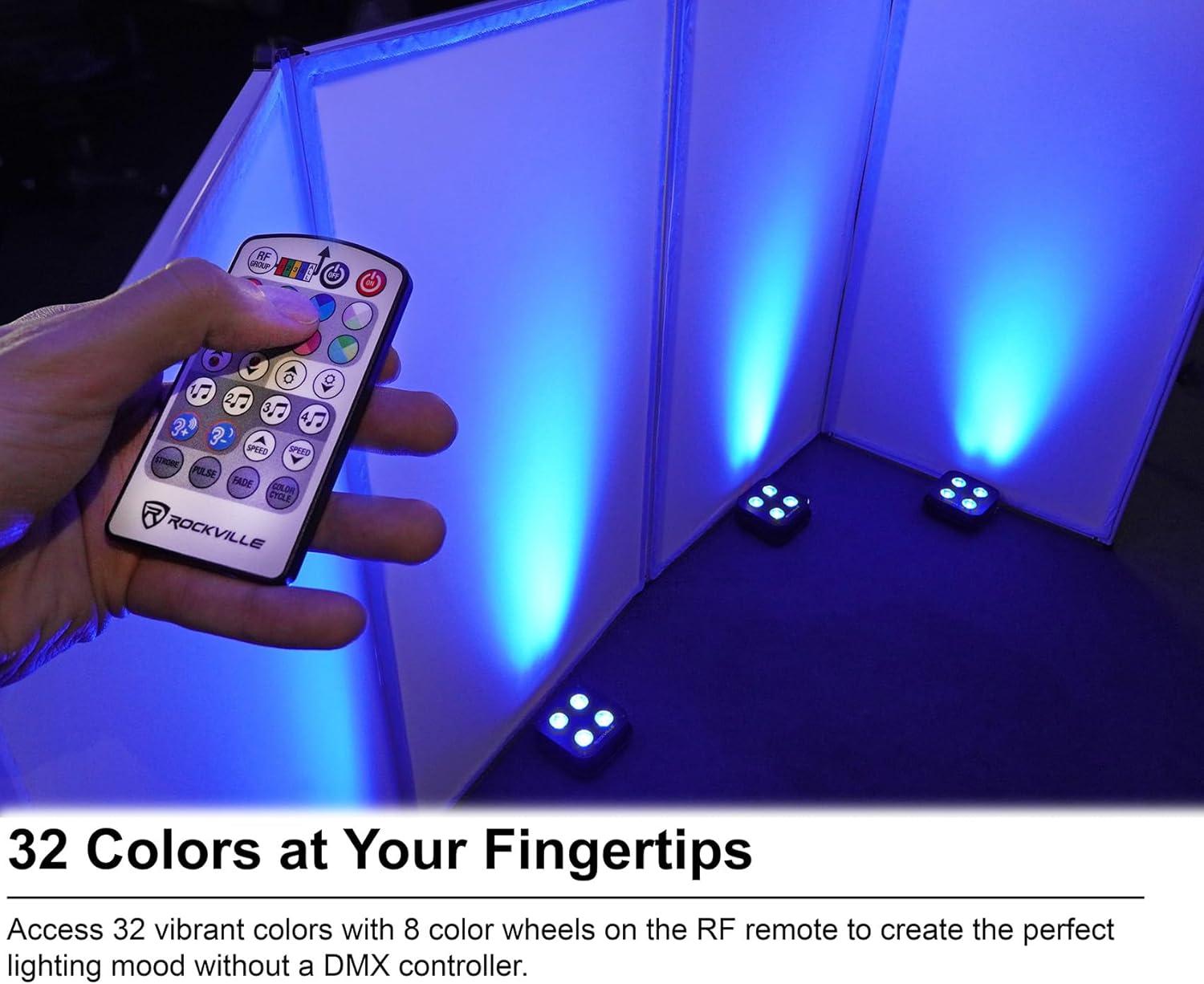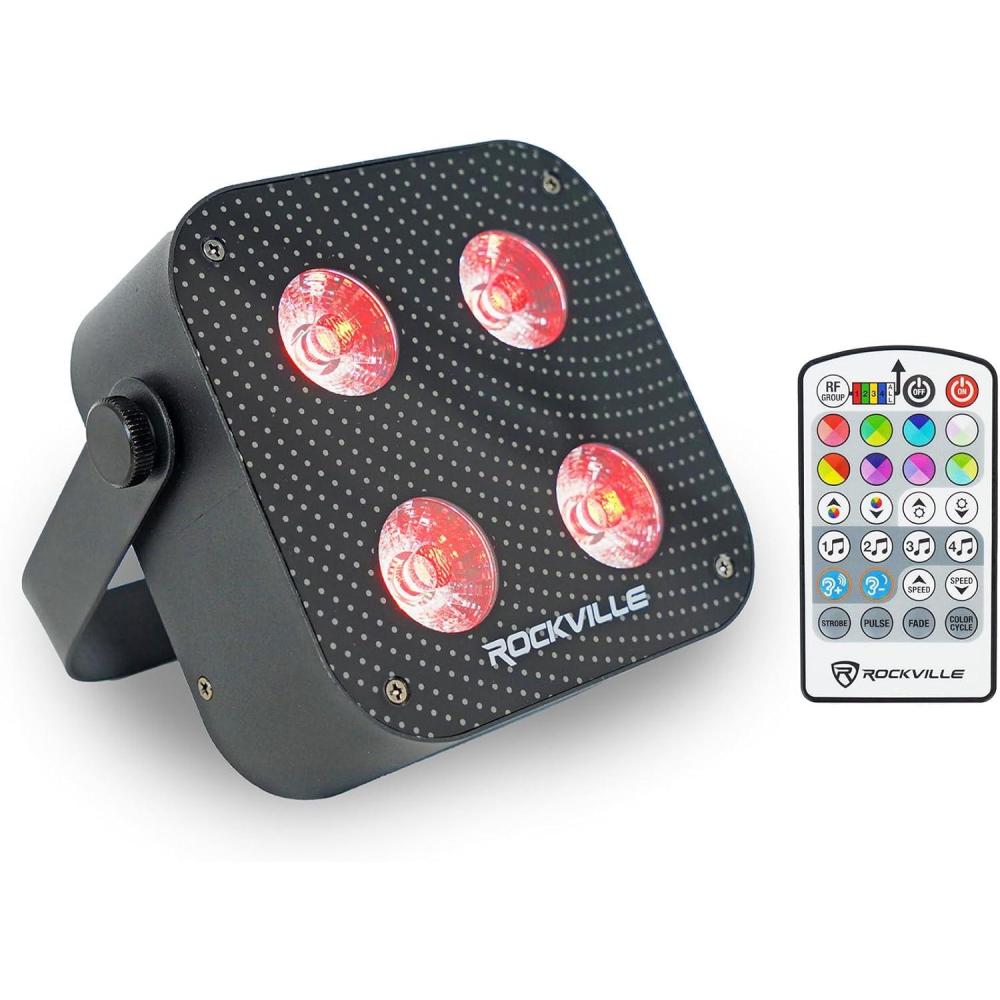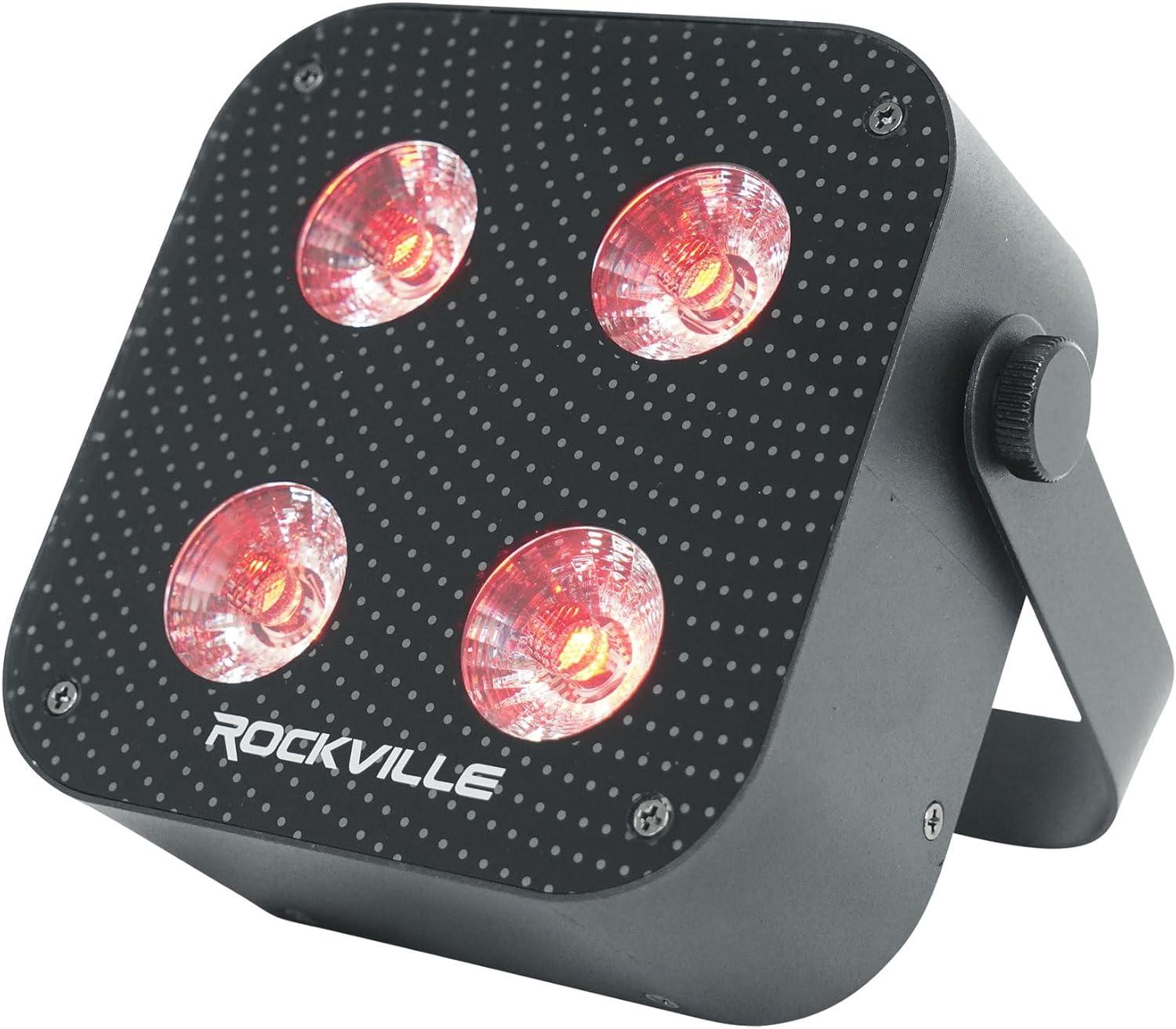 Rockville MINI RF4 V2 White LED Wash Up Light RGBWA+UV, Compact, App, Remote Control, LCD, Wireless DMX, Rechargeable, Perfect for DJ/Party Lighting(Black)