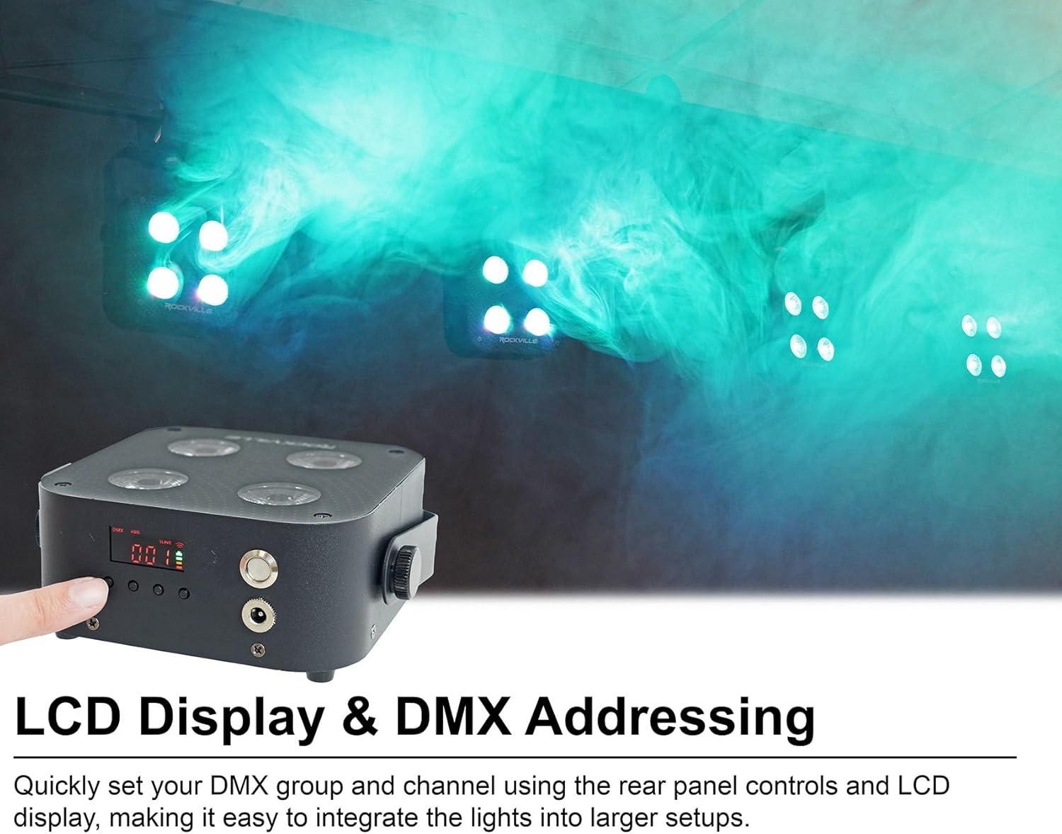 LCD DISPLAY & DMX CONTROL (NEW TO V2): New LCD display for easy DMX group and channel selection. With DMX address assignability, you can integrate the lights seamlessly into your existing setup.