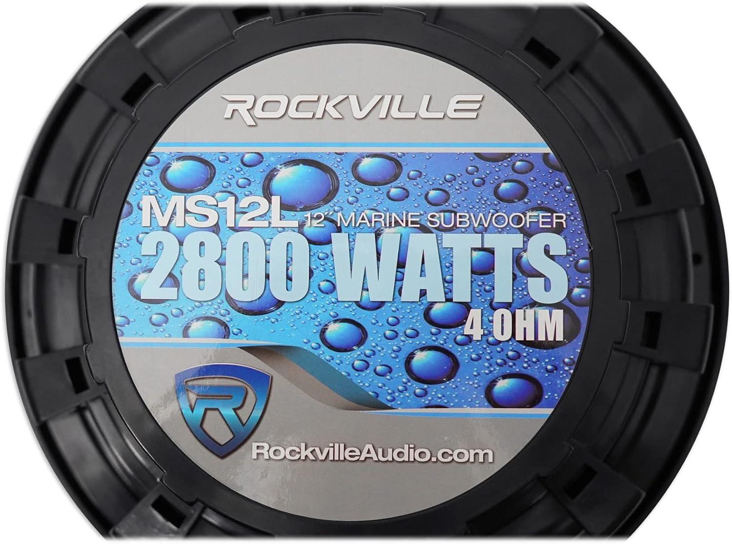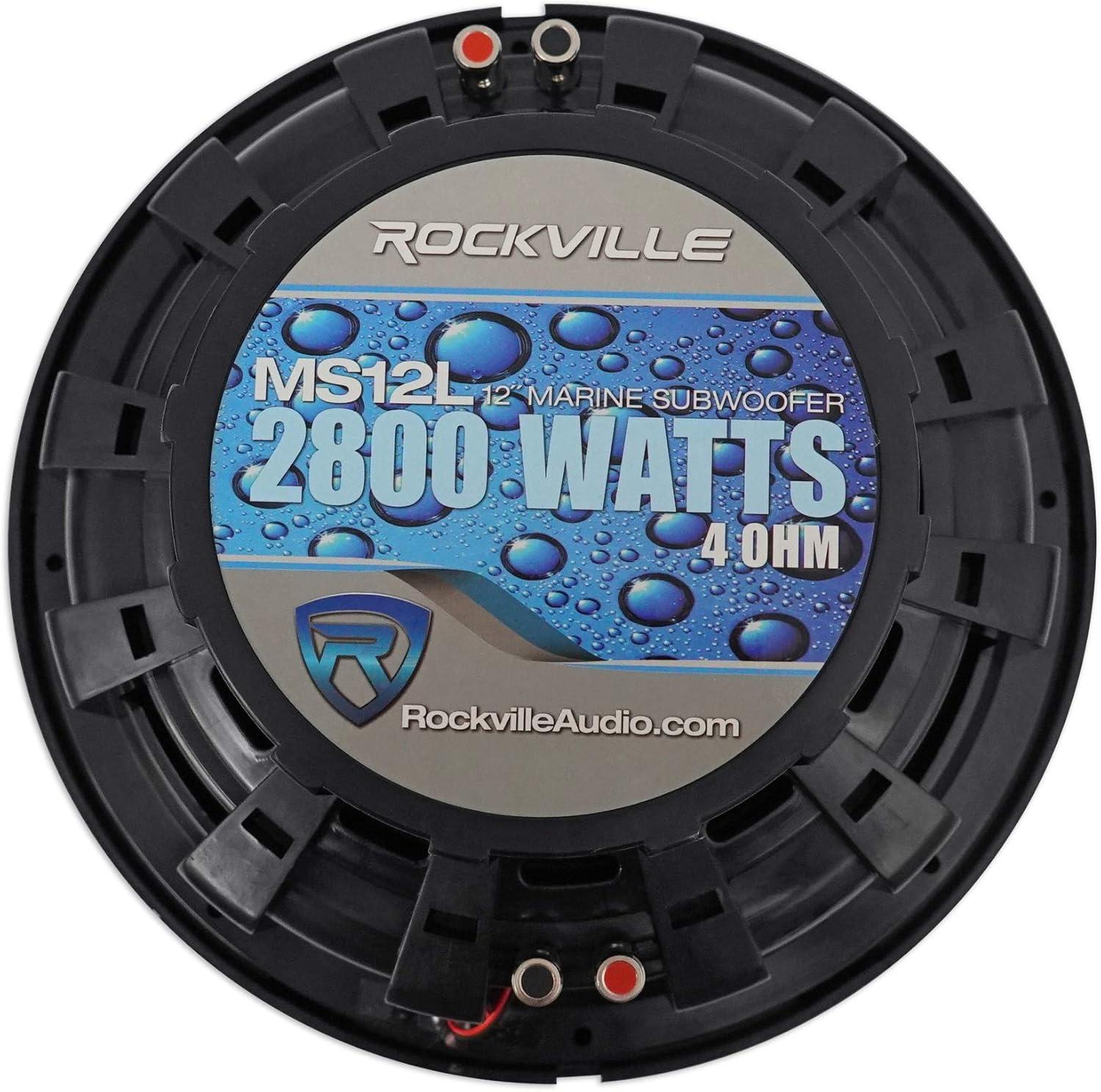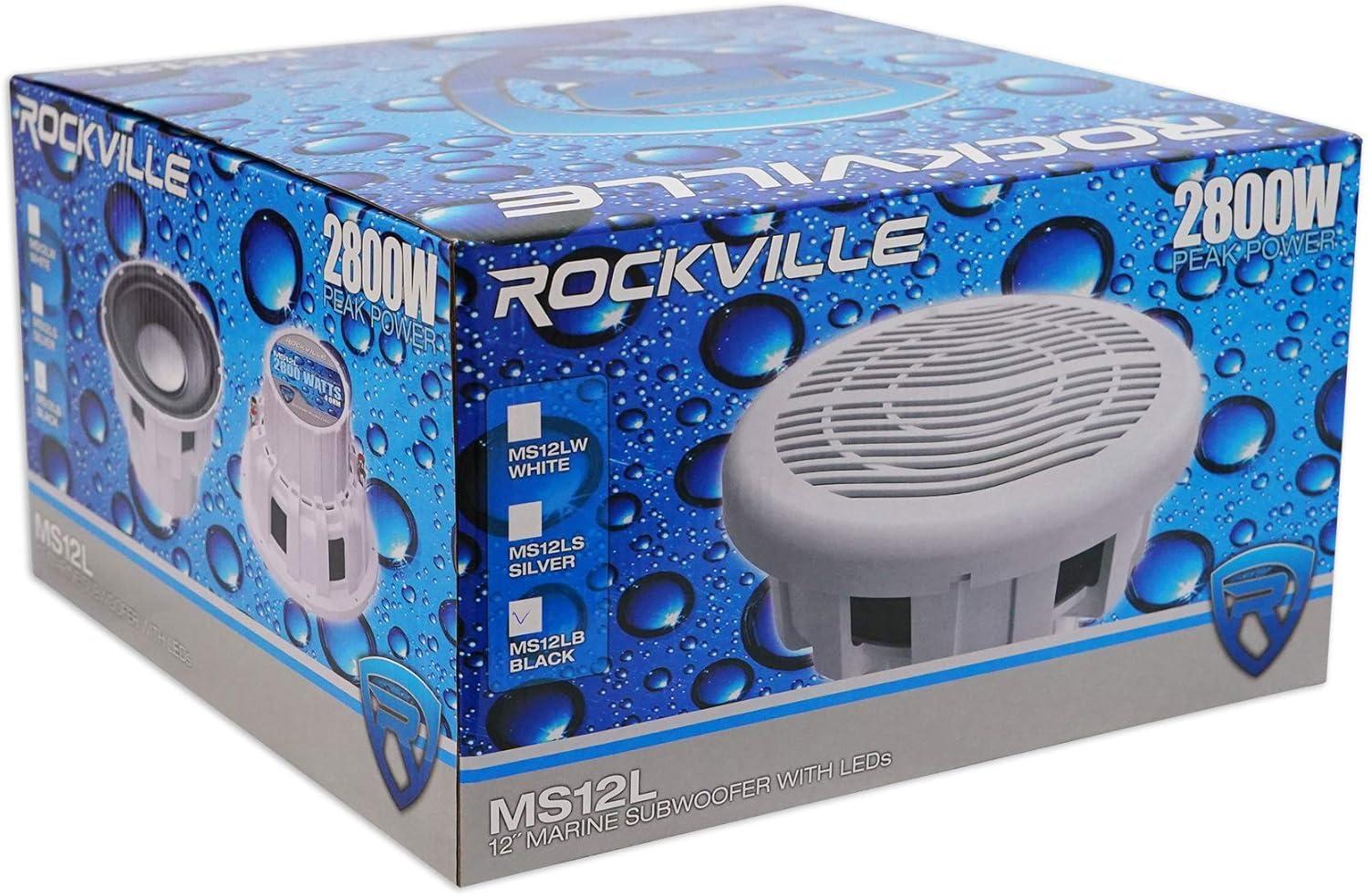 Rockville MS12LW 2800W Peak / 700W RMS 12″ Marine Subwoofer Dual 4 Ohm, Waterproof Design, LED Lighting, High-Power Bass for Boats and Marine Audio Systems(Black)