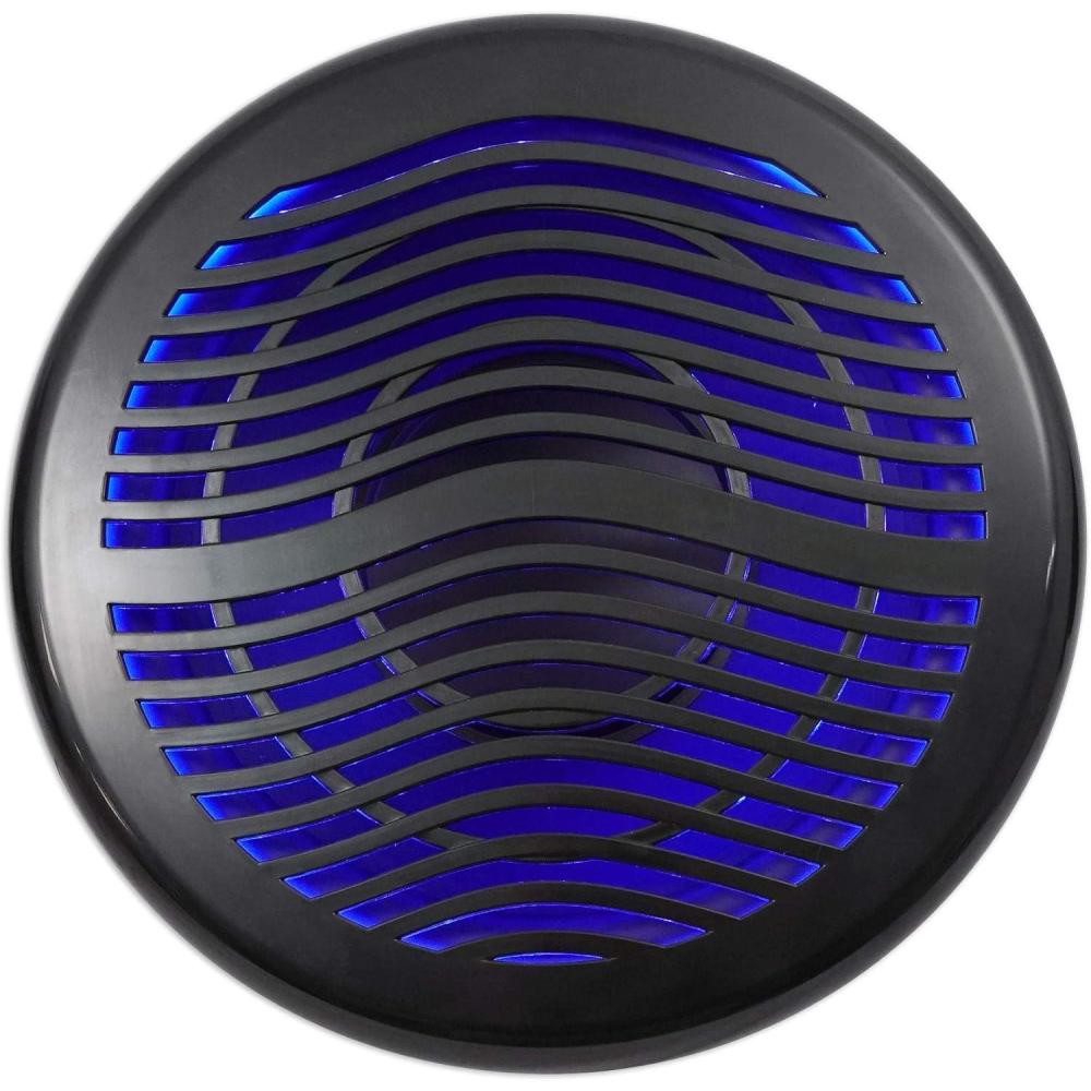 VIBRANT LED ILLUMINATION: Integrated blue LED lighting adds a dynamic visual effect to boat audio setups, ideal for night cruises or lively marine gatherings.