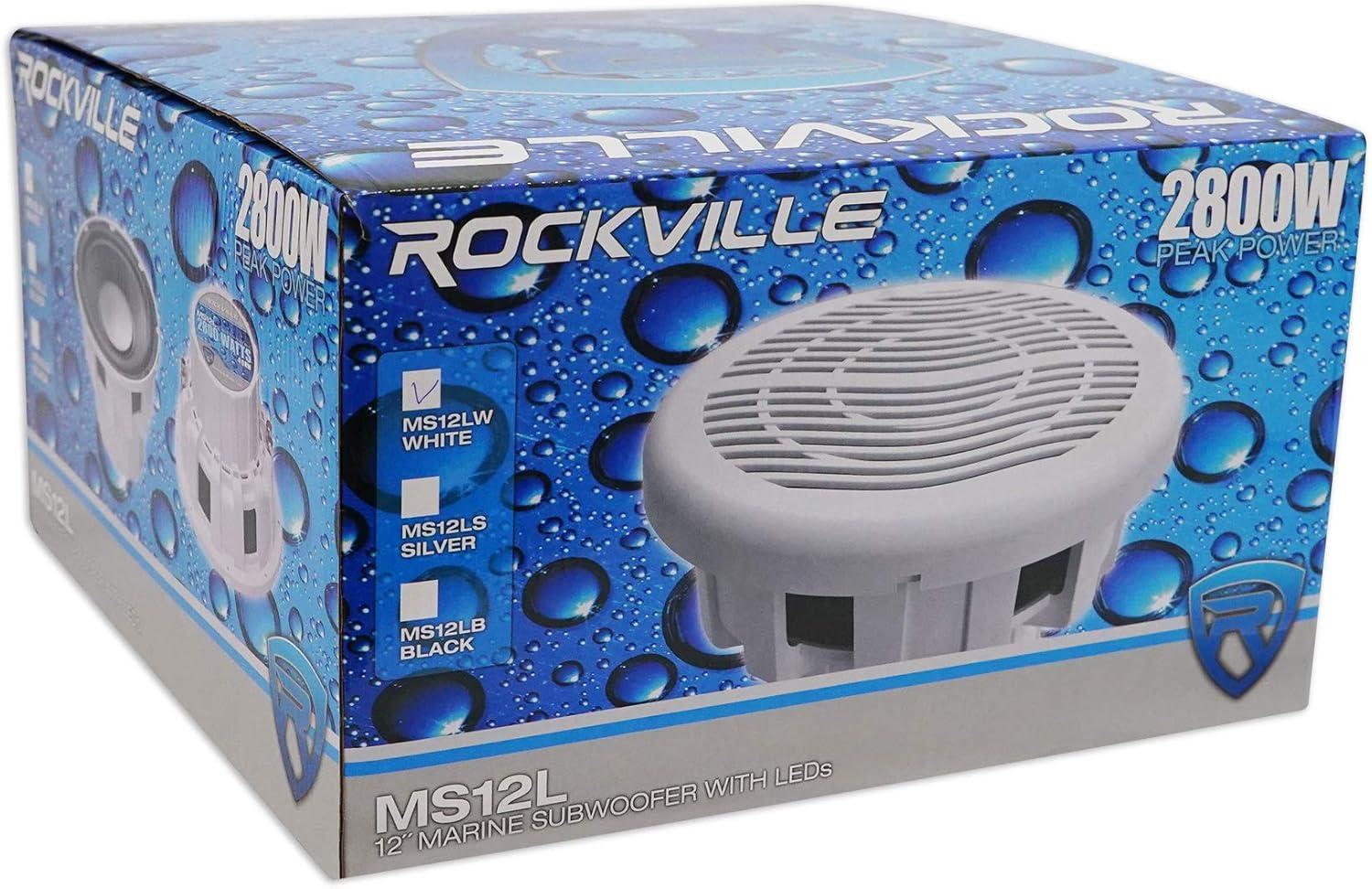 Rockville MS12LW 2800W Peak / 700W RMS 12″ Marine Subwoofer Dual 4 Ohm, Waterproof Design, LED Lighting, High-Power Bass for Boats and Marine Audio Systems(White)
