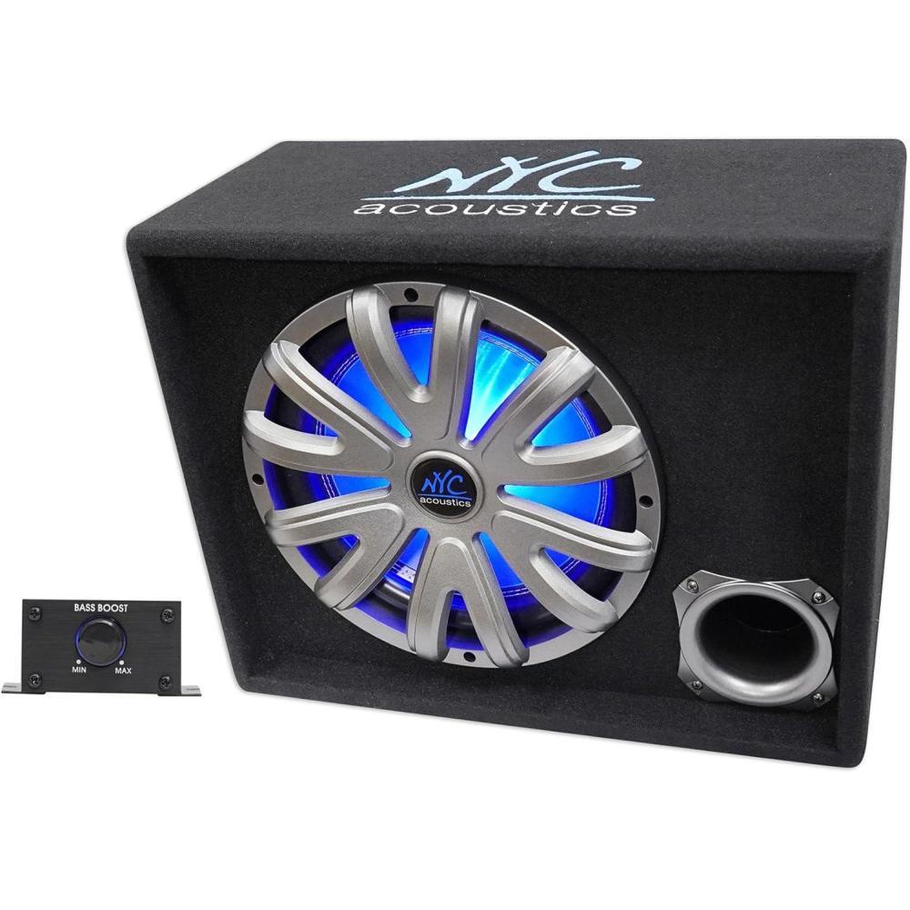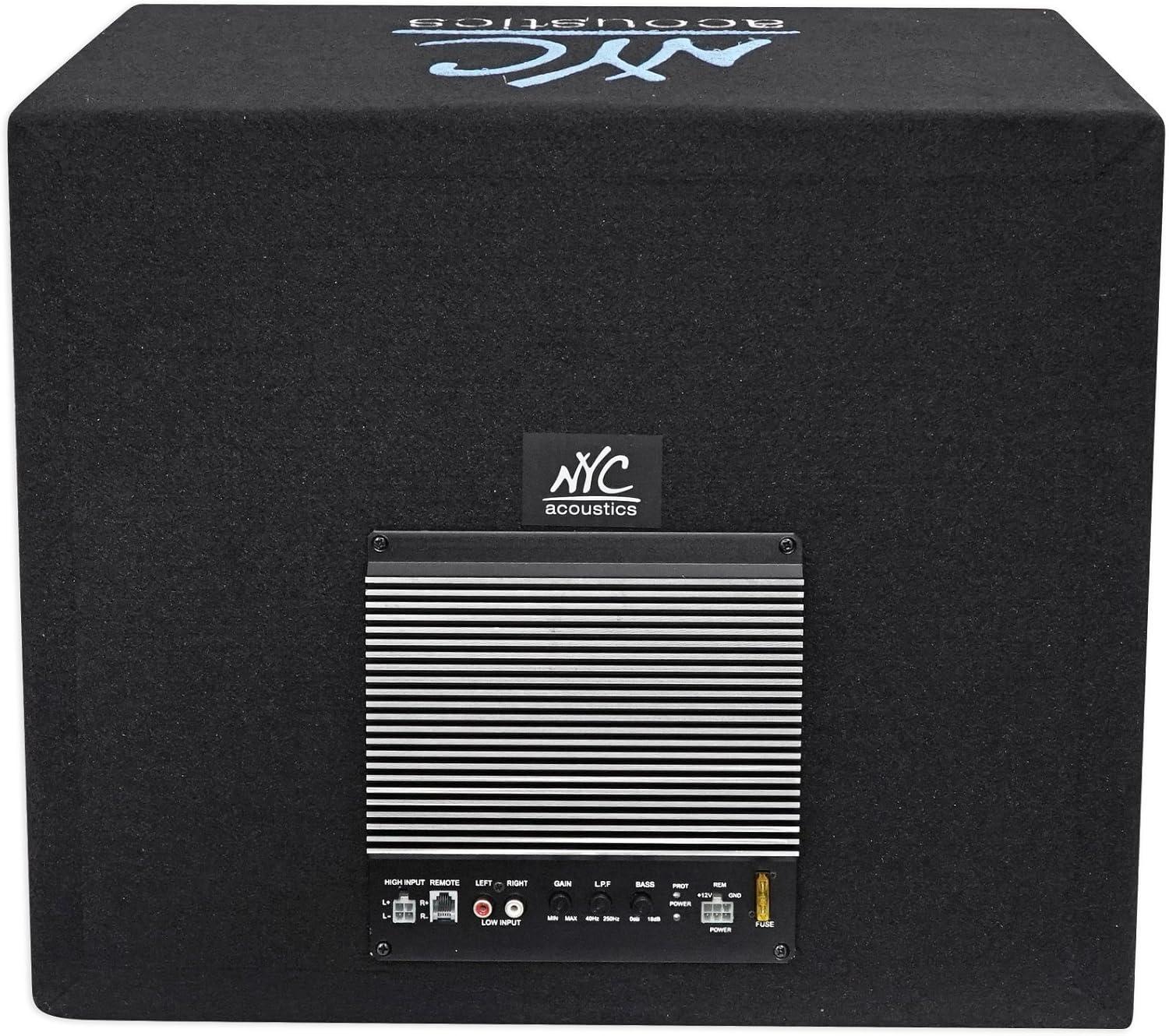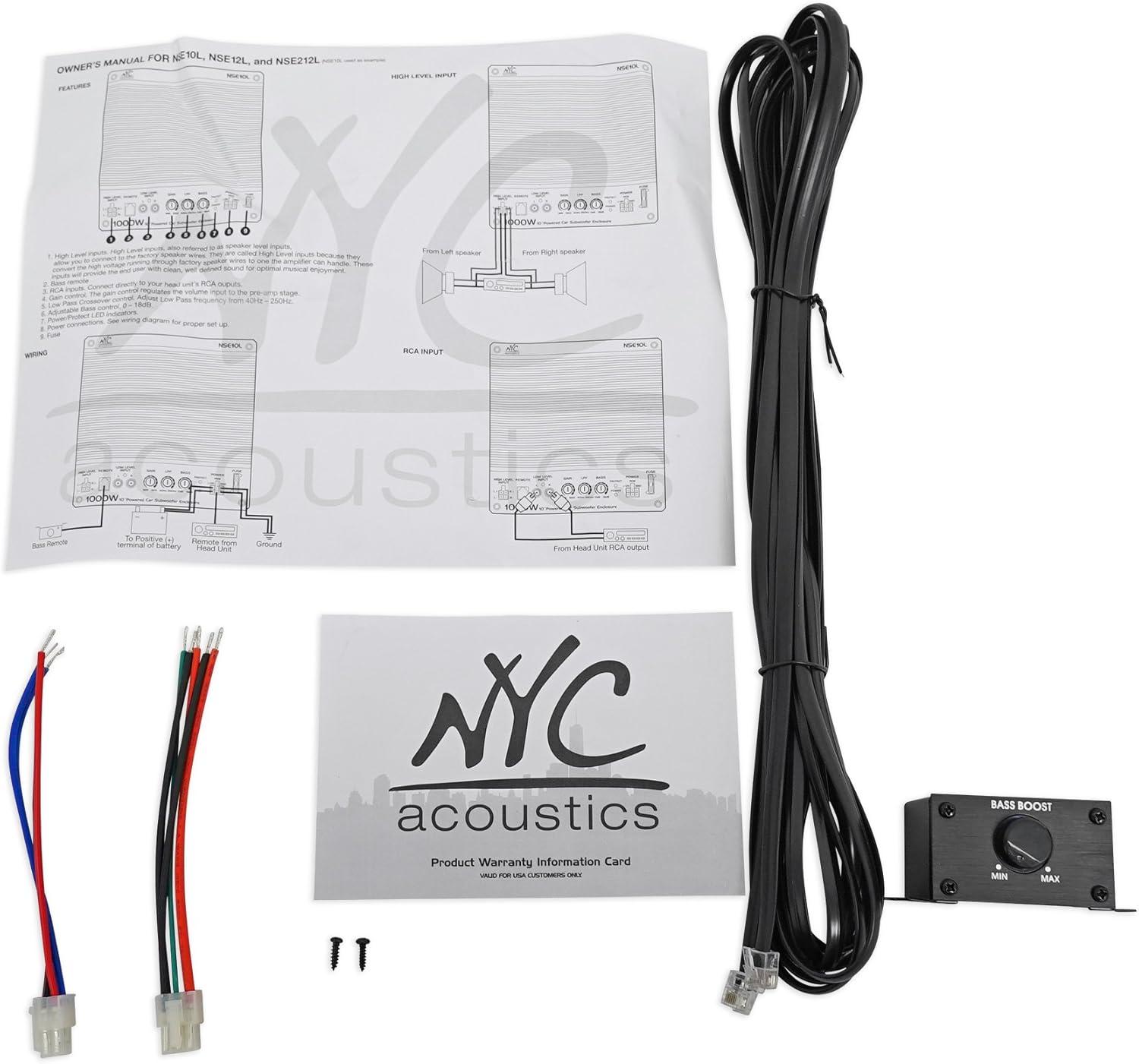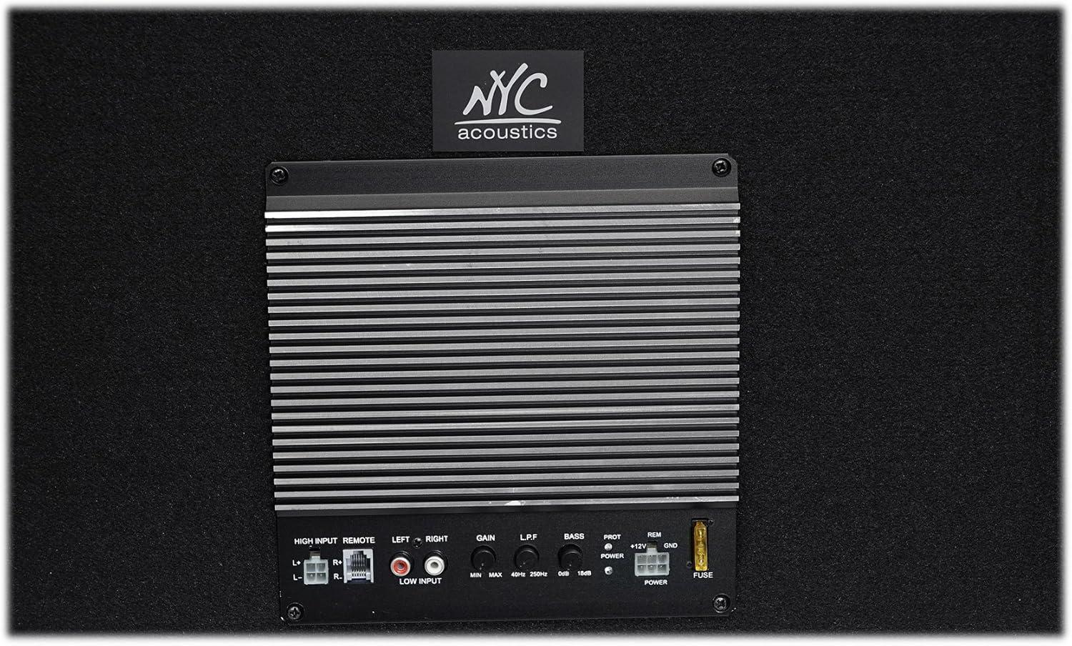 Introducing the NYC Acoustics NSE series of powered, ported subwoofer enclosures. The NSE series is your all-in-one solution to give you huge bumping bass! We combined the amplifier, subwoofer, and enclosure all into one product! This makes installation neater and easier as well. All you need to do is run power, ground and RCA cables and you are done! If your head unit does not have RCA outputs then you can use our speaker level inputs for an easy installation without replacing your head unit.