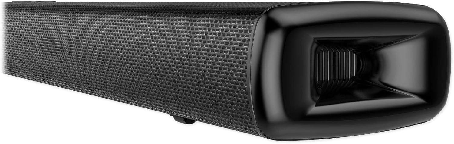 COMPACT AND FUNCTIONAL DESIGN: 35″ wide soundbar with recessed input panel, LED display for track and volume, and PCM decoder ensures clean, distortion-free sound.