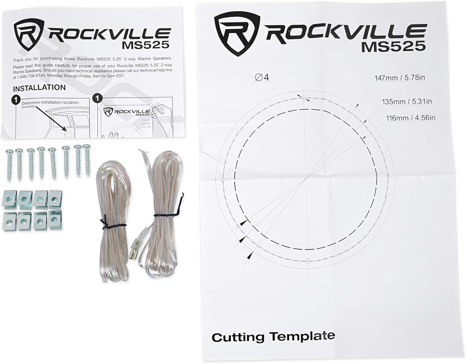 The Rockville MS525B 5.25″ 400W Marine Boat Speakers are engineered for clear, powerful sound in marine and outdoor environments. With 400W peak and 200W RMS per pair (100W each), these 2-way speakers use an injection-molded polypropylene cone and 1″ ASV voice coil to deliver rich audio across a 110Hz-20kHz range. Their 87dB +/-2dB sensitivity and 1″ PEI diaphragm tweeter with NdFeB magnet ensure crisp, detailed highs.