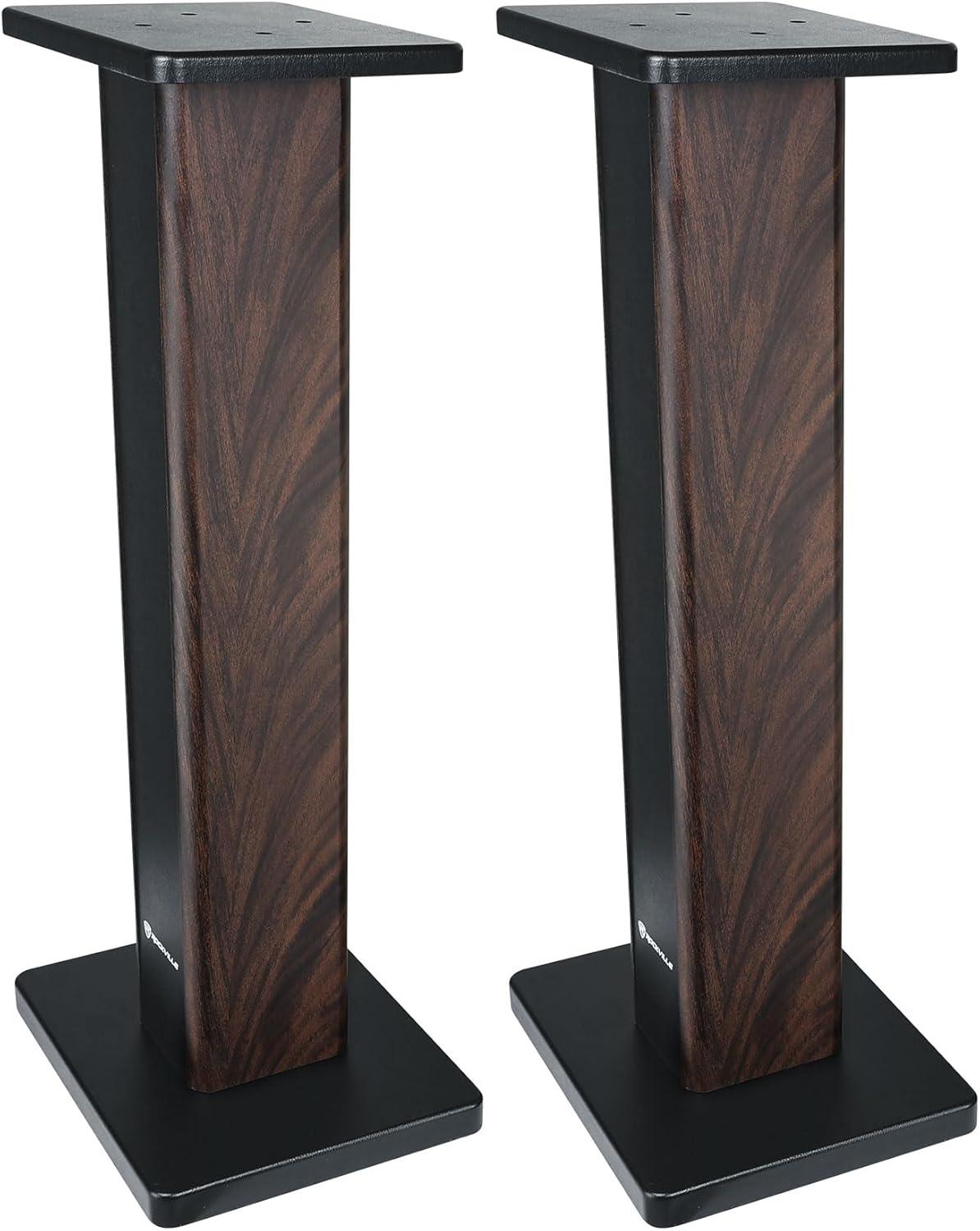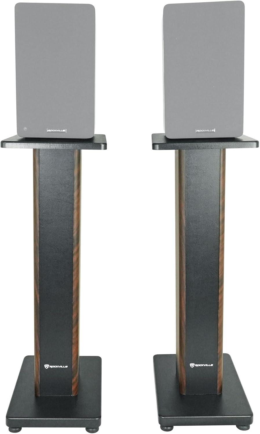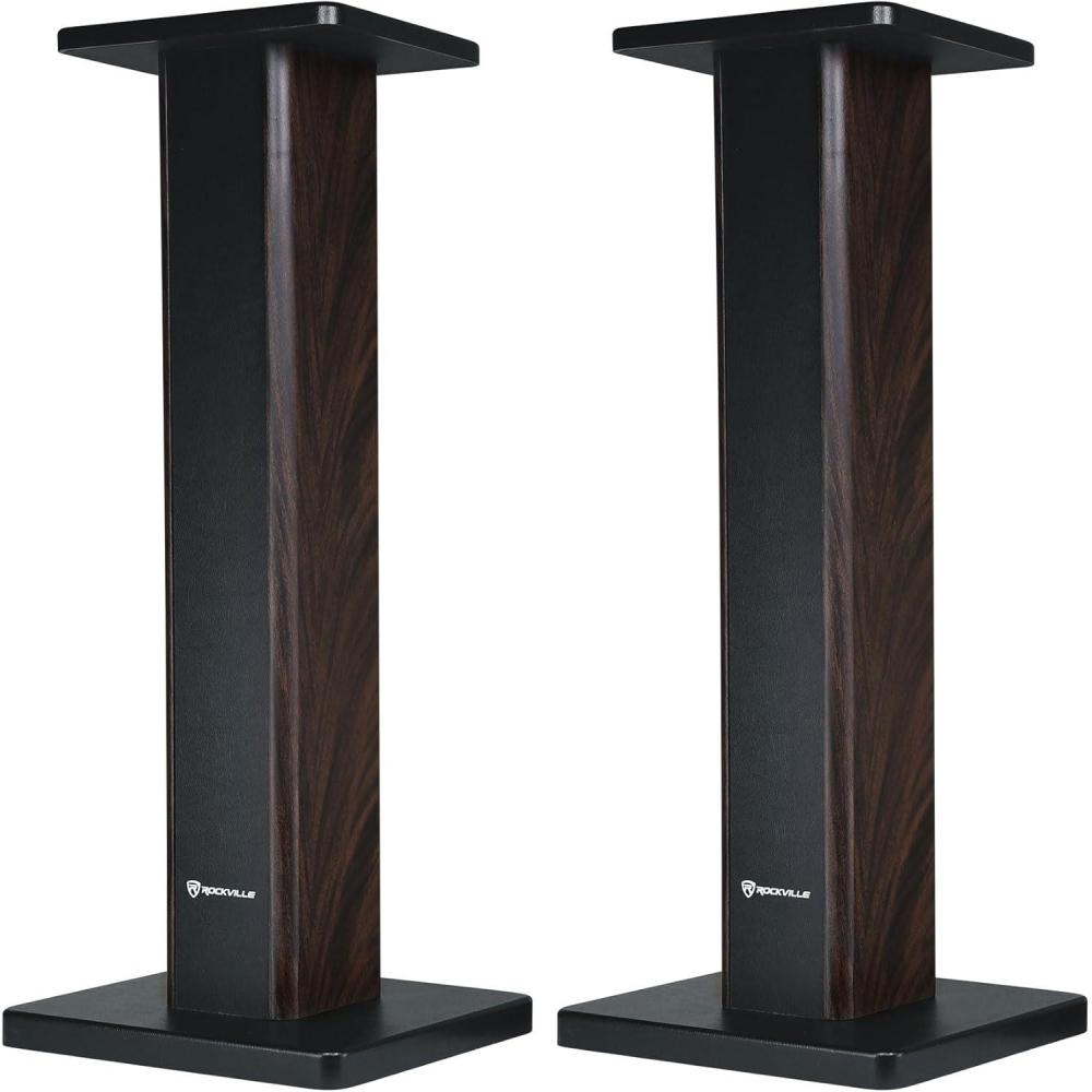 Rockville Pair RHT28 28 Inch Bookshelf Speaker Stands, 60 lbs Capacity, Surround Sound Home Theater, Premium Wood, Dual Top Plates, Sand-Fillable, for Audiophiles and Studio Monitors(Dark Wood)