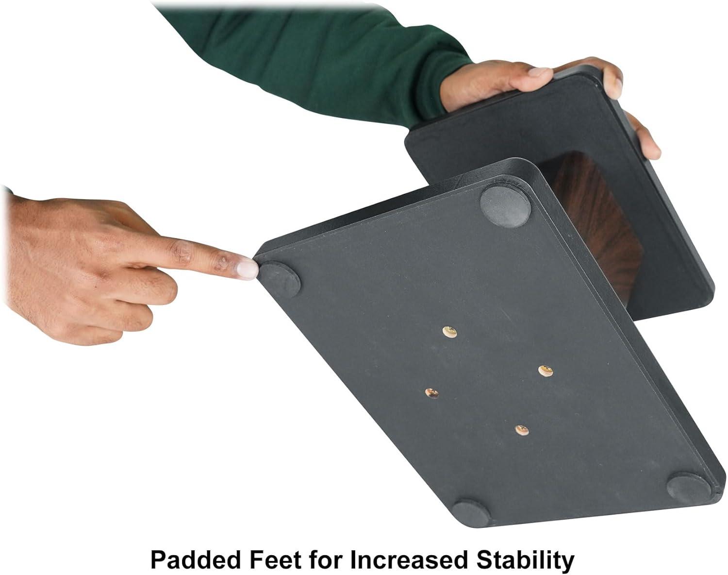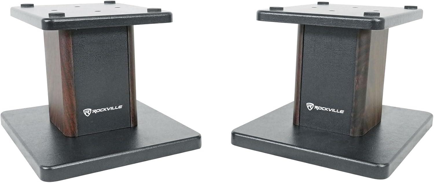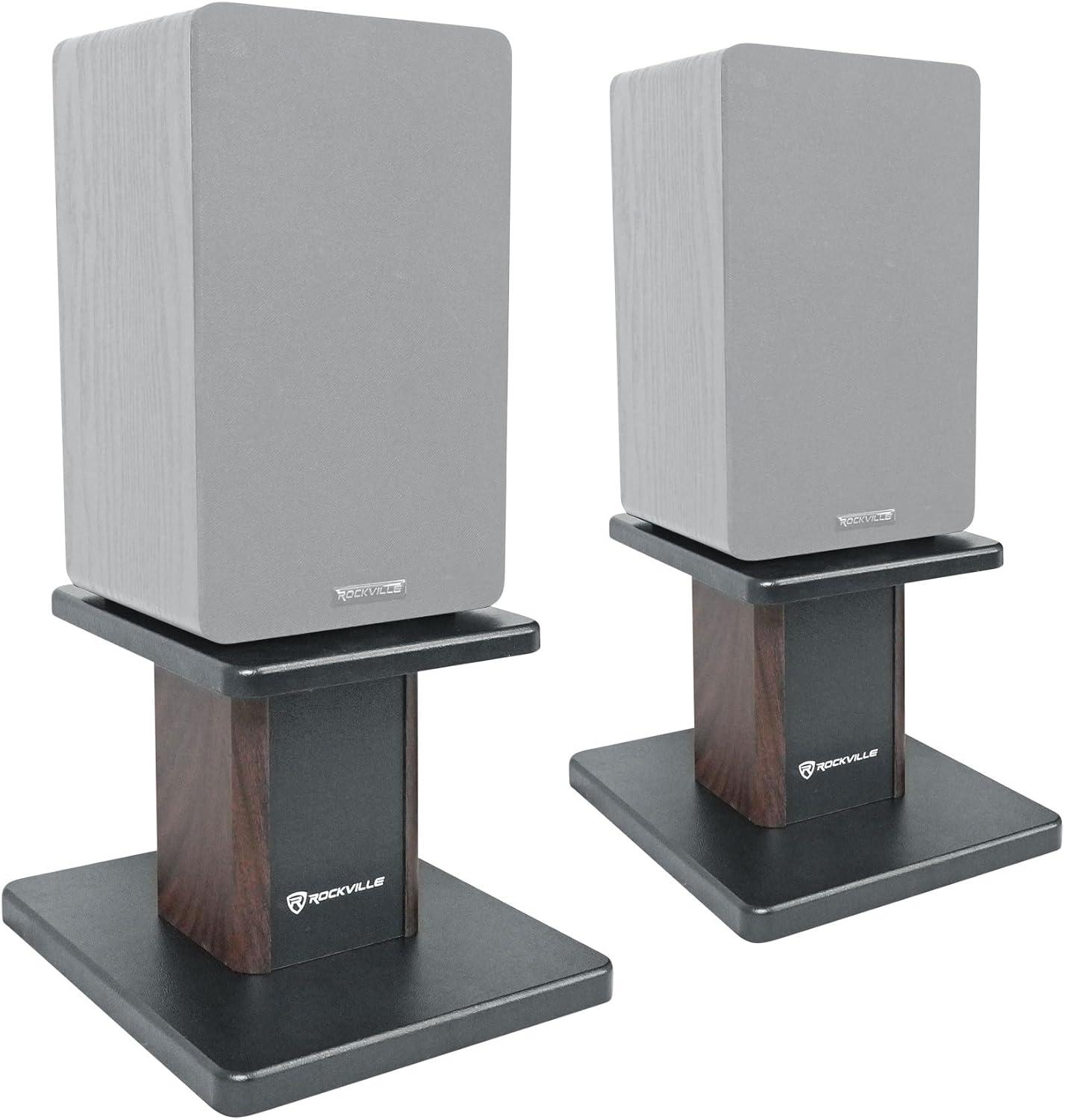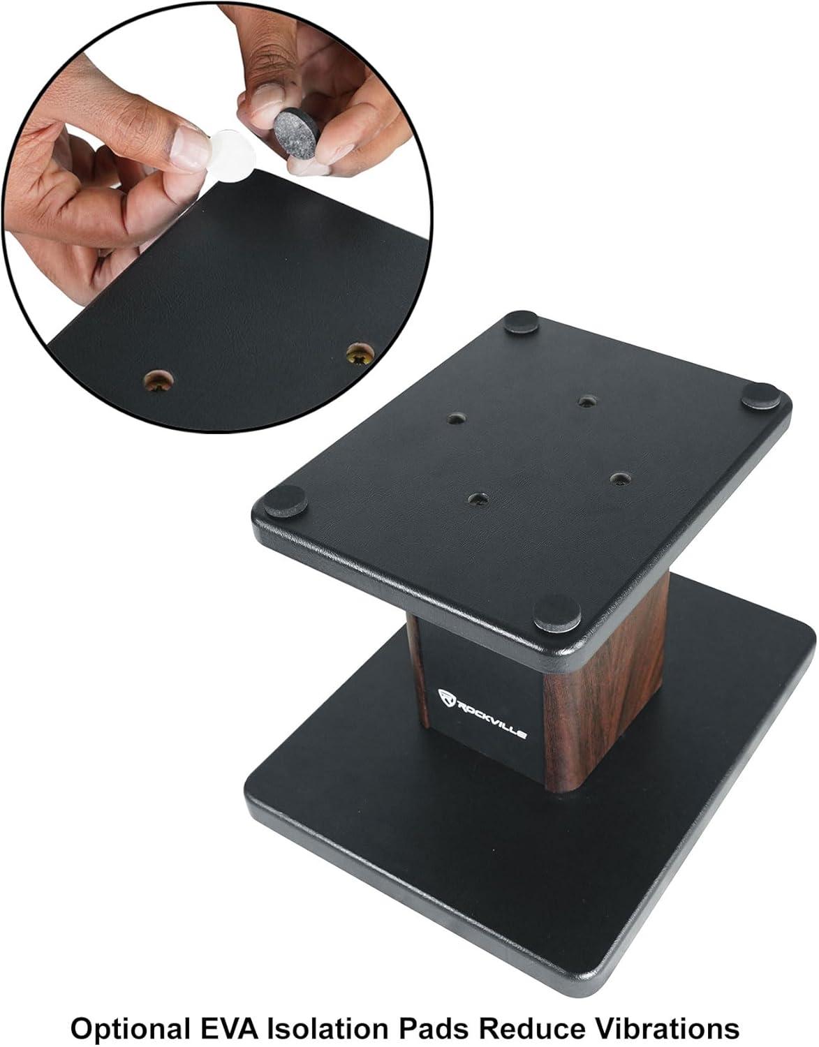 Description: The Rockville RHT8C high performance Desktop wood speaker stands are designed with appearance, performance, and quality in mind. These stands are perfect for Computer speakers, Bookshelf speakers, and studio monitors! Our stands are finished with premium furniture-grade paint that will not crack, chip, or peel. These stands are constructed from high quality medium density fiber core to minimize resonance. Unlike our competitors who use particle board we use a higher quality wood in the construction of our stands. With the included EVA speaker isolation pads you can feel confident that your speakers will be sturdy and perform optimally. The load capacity of these stands are 66 lbs. Most other stands on the market have a maximum load capacity of 20 lbs. which really is not enough for a lot of speakers on the market. These stands are sturdy, built well, look great, and out-perform the competition so buy with confidence!
