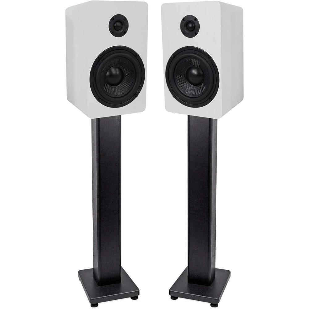 Package Includes: (1)PairRockvilIe RockShelf 54W 360w White 5.25″ Home Theater Bookshelf Speakers/4 Ohm. (1) Pair of RockvilIe RHT28 28″ Inch Bookshelf Speaker Stands Surround Sound Home Theater. Features: Pair RockvilIe RockShelf 54W V2 White 5.25″ Home Bookshelf Speakers/4 Ohm/Kevlar