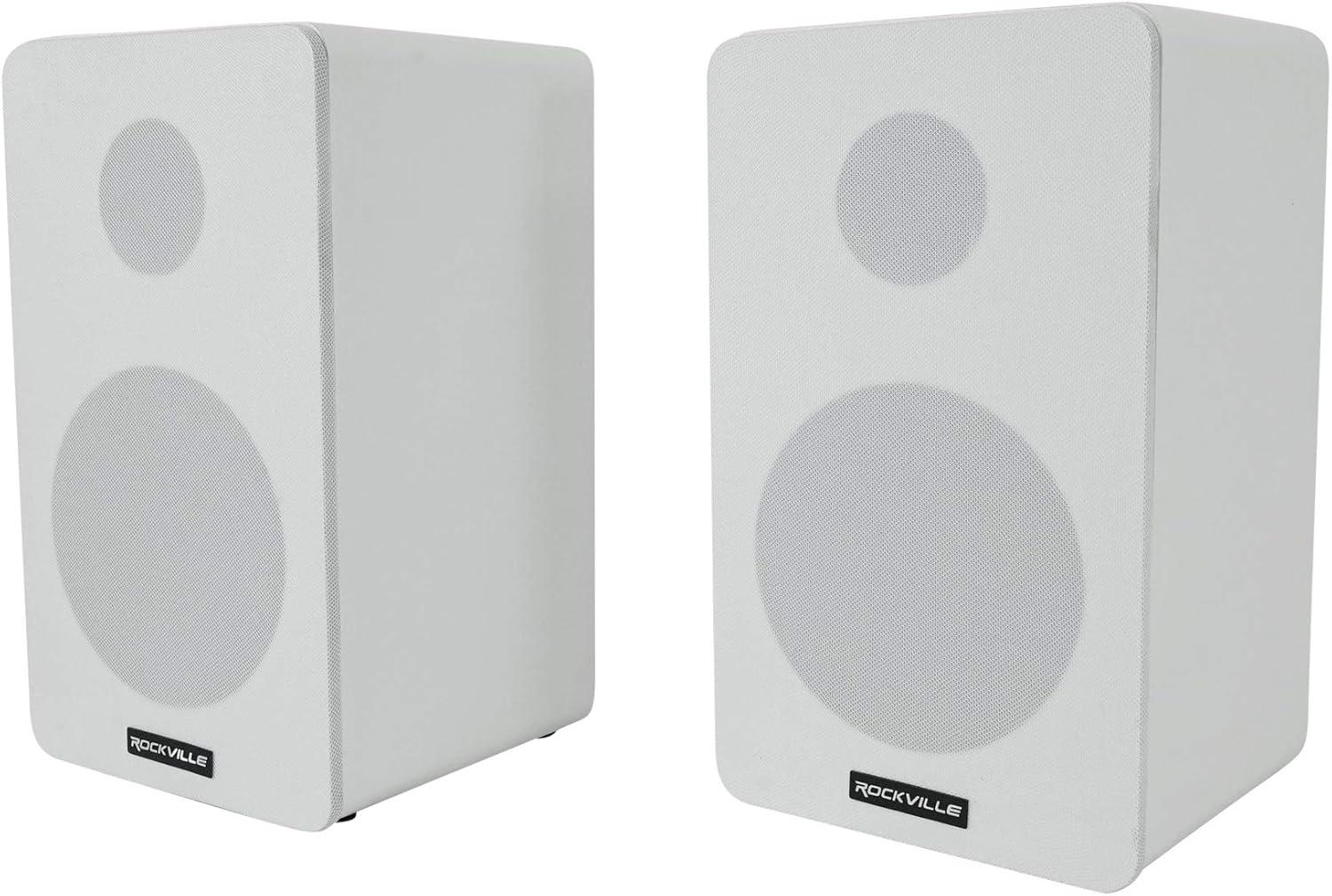 Package Includes: (1)PairRockvilIe RockShelf 54W 360w White 5.25″ Home Theater Bookshelf Speakers/4 Ohm. (1) Pair RockvilIe RS37W 37″ Steel Bookshelf Speaker/Studio Monitor Stands – White. Features: Pair RockvilIe RockShelf 54W V2 White 5.25″ Home Bookshelf Speakers/4 Ohm/Kevlar. RMS Power: 45 Watts Each / 90 Watts per pair. Peak Power: 180 Watts Each / 360 Watts per pair. Woofer: 5.25 Kevlar cone. Tweeter: 1 Silk dome tweeter