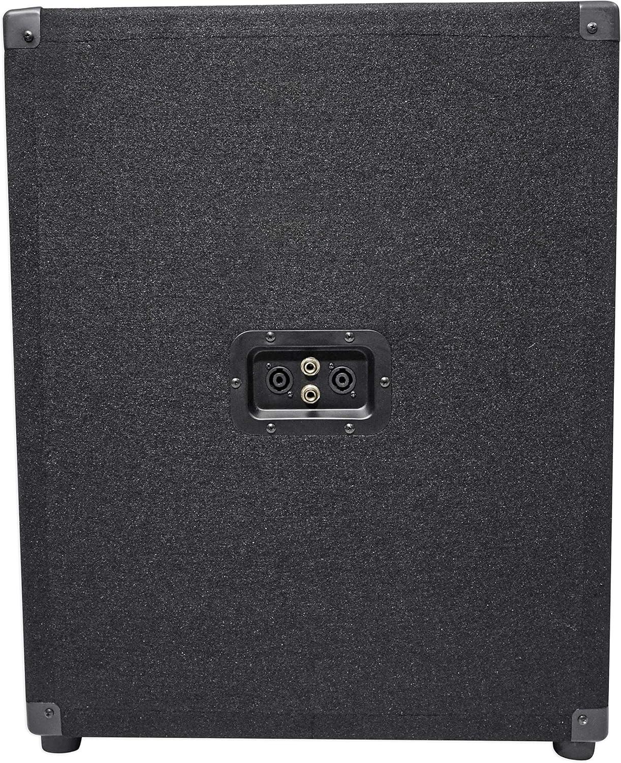 Construction: High-Density, High-Quality Non Resonant MDF, Stapled, Bonded & Braced. Ergonomic Recessed Handles. Molded Steel Grill. Aviation Grade Black Carpet. Pole Mount. Rubber Isolating Feet. 1/4″ Jack (In/Out). SpeakON (In/Out). All input/output connections are internally connected in parallel. Nominal Impedance: 8 Ohm. Sensitivity: 98dB (+ or 2 dB) @ 1w/1m. Frequency Response: 35 Hz 4 Khz. Dimensions (W x D x H): 20 x 23.62 x 25.59 (Inches). Weight: 64 LBS