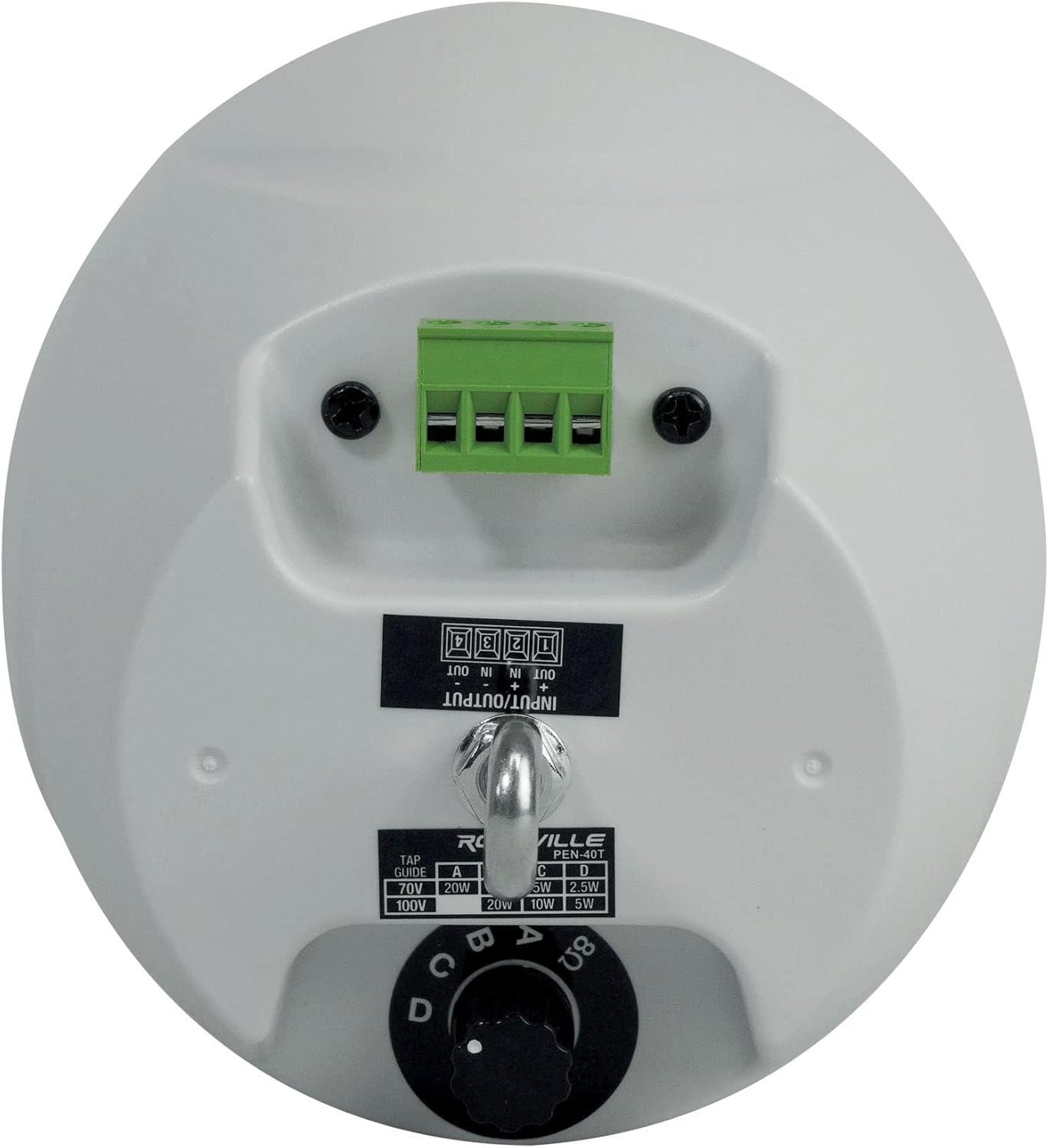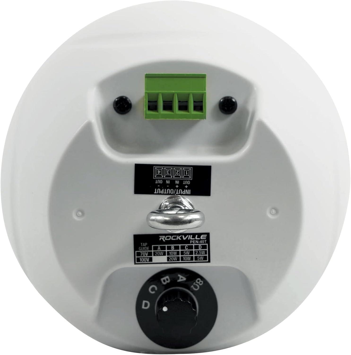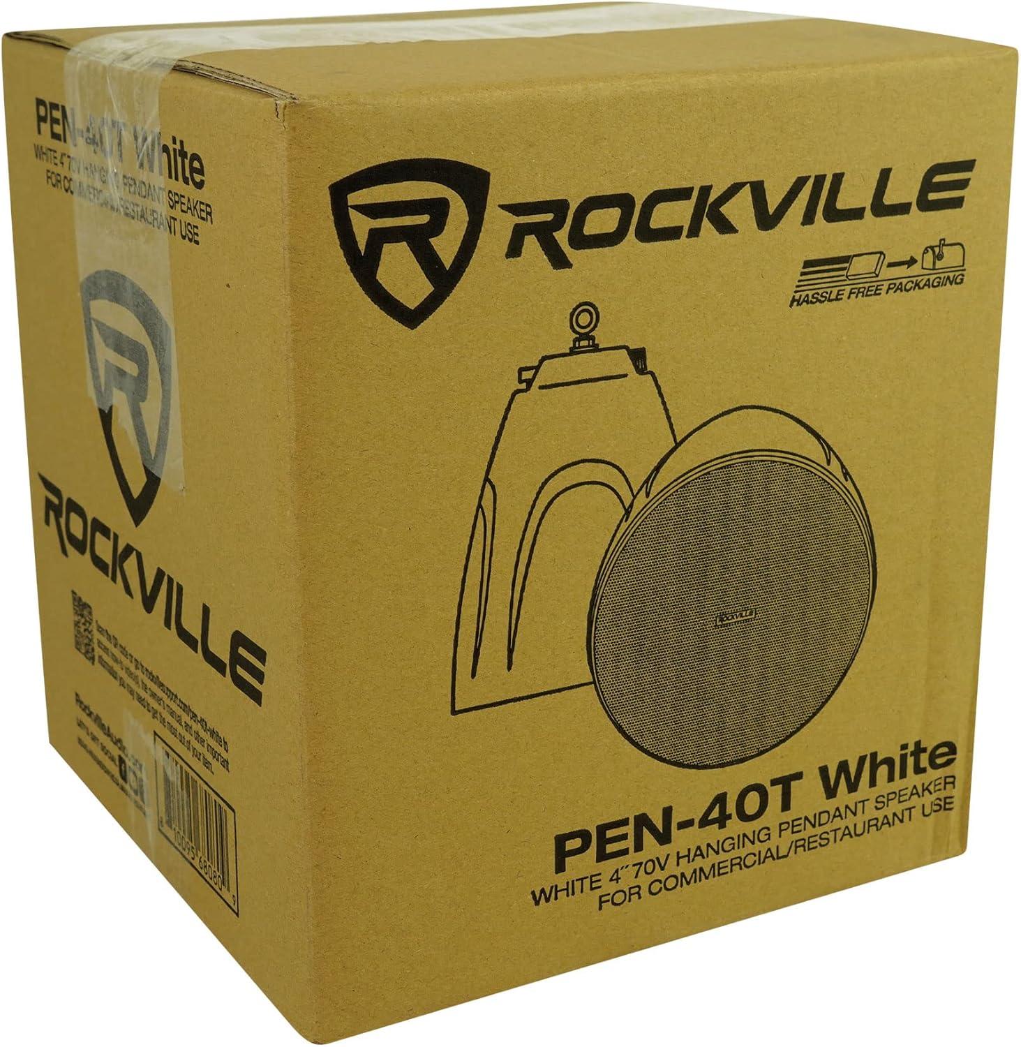 Rockville PEN-40T Black 70V/100V/8 Ohm 4″ Hanging Pendant Speaker, 2-Way Design, Easy Install, Durable Build, for Restaurants/Offices(White)