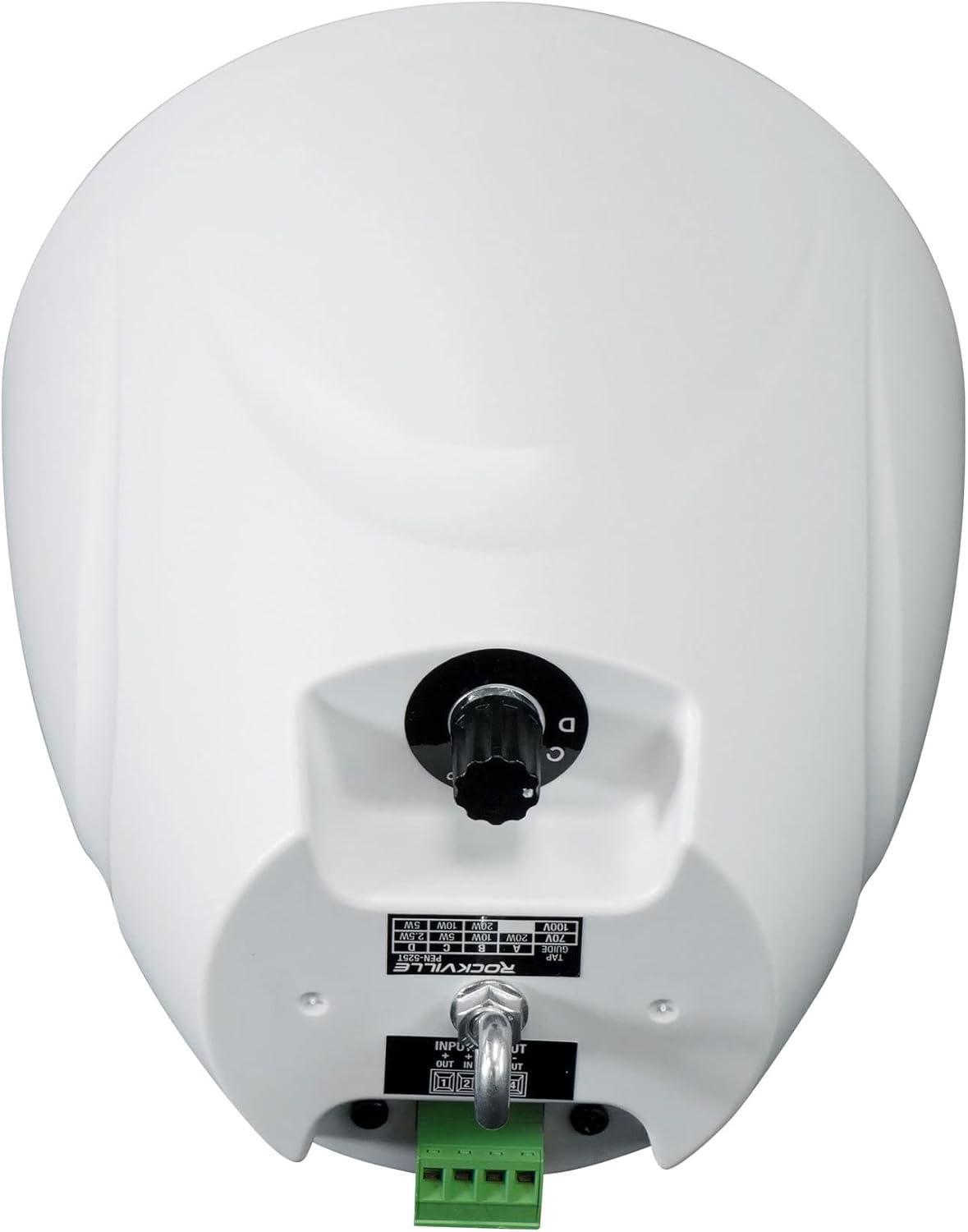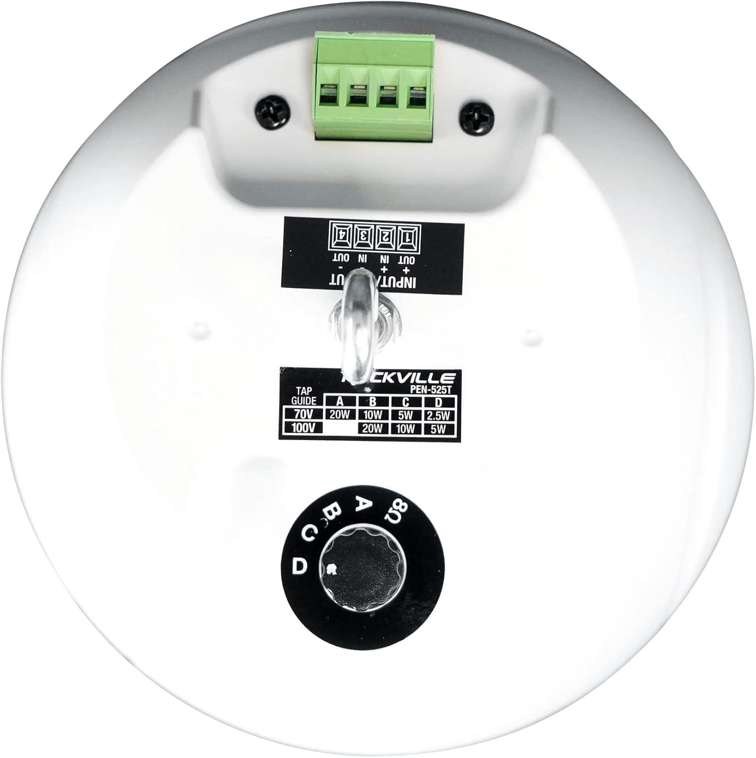 Rockville PEN-525T 5.25" 70V Hanging Pendant Speaker, White, 71Hz-20kHz, Polypropylene Woofer, PEI Dome Tweeter, for Restaurants and Retail(White)