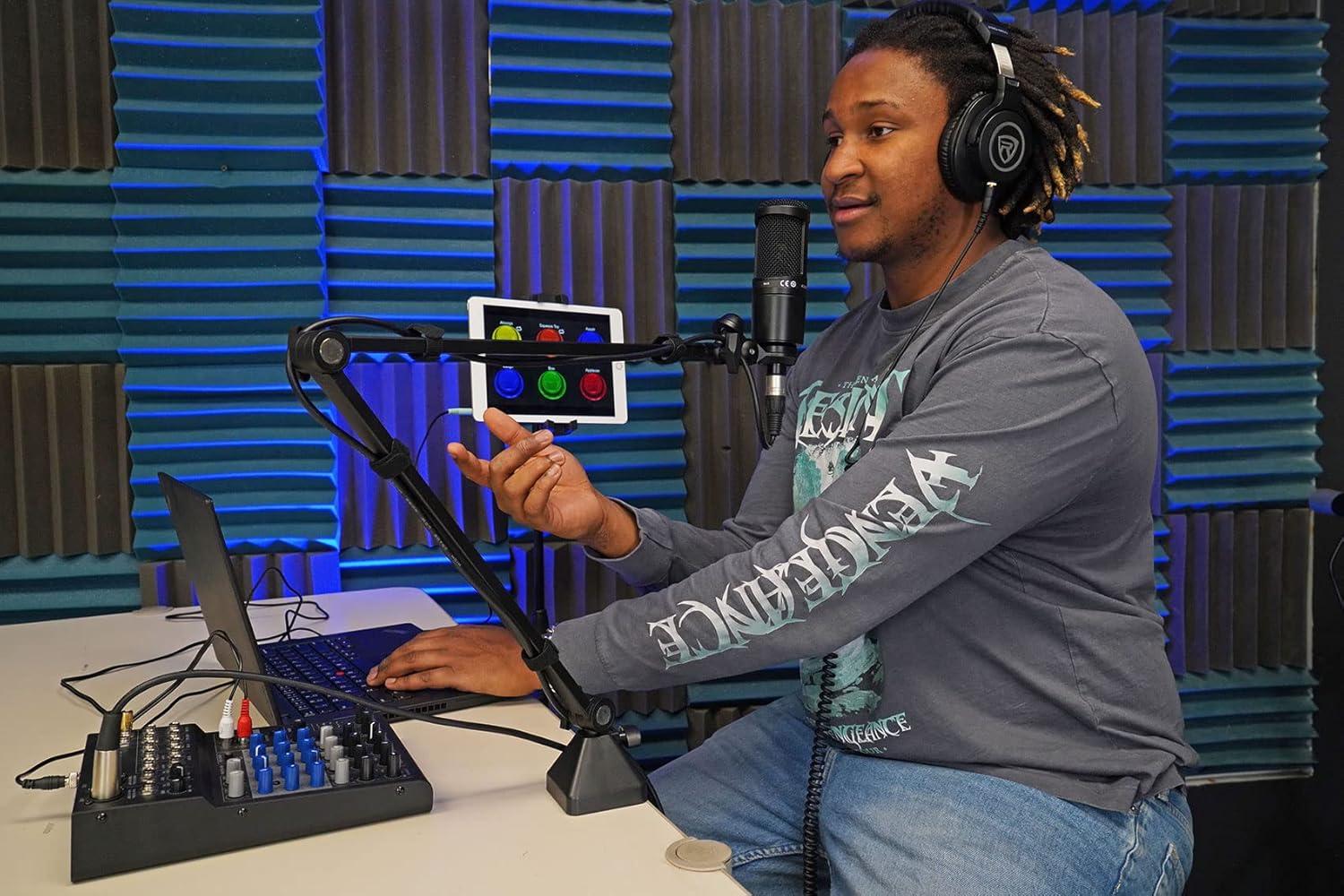 ADJUSTABLE 34-INCH BOOM ARM: Articulates in 3 areas and rotates 360 degree for precise microphone positioning in podcasting, streaming, or recording setups