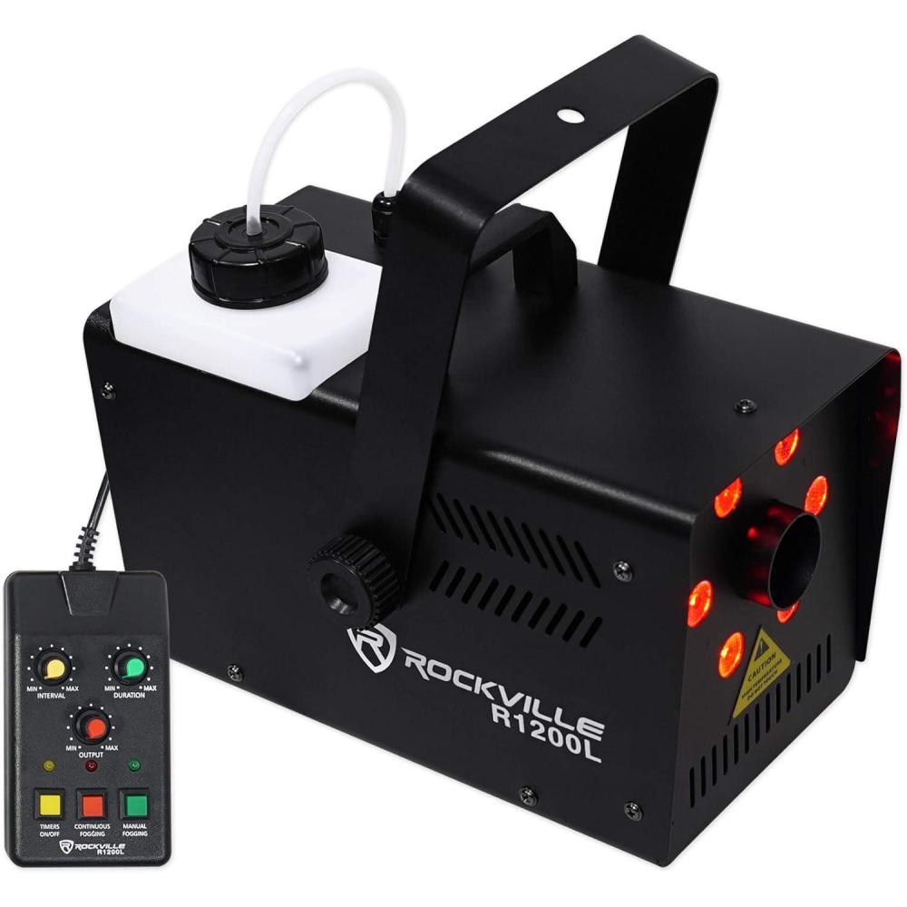 The Rockville R1200L fog machine is incredible. On top of being a top of the line fog machine; we’ve added built in LED lights that give off an effect of colored fog coming out of the machine. The LED’s on the machine can be controlled in 3 ways: Sound activated – light and color will go along with the beat, You can use one of the (2) included remotes, This has 7 channels of DMX controls.