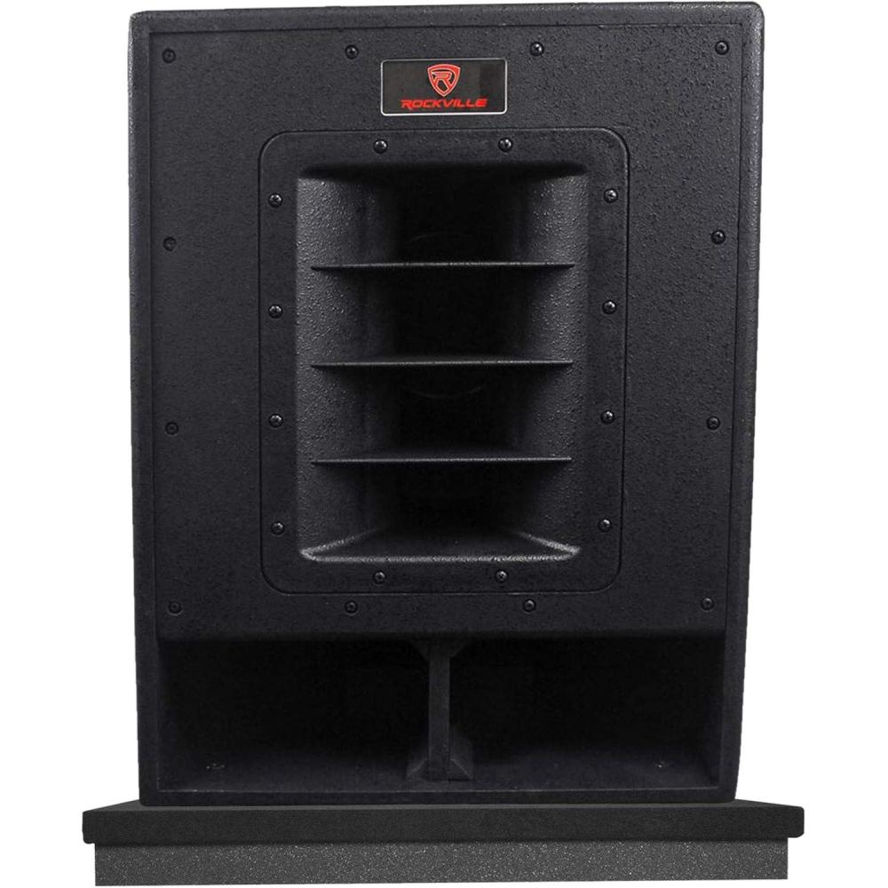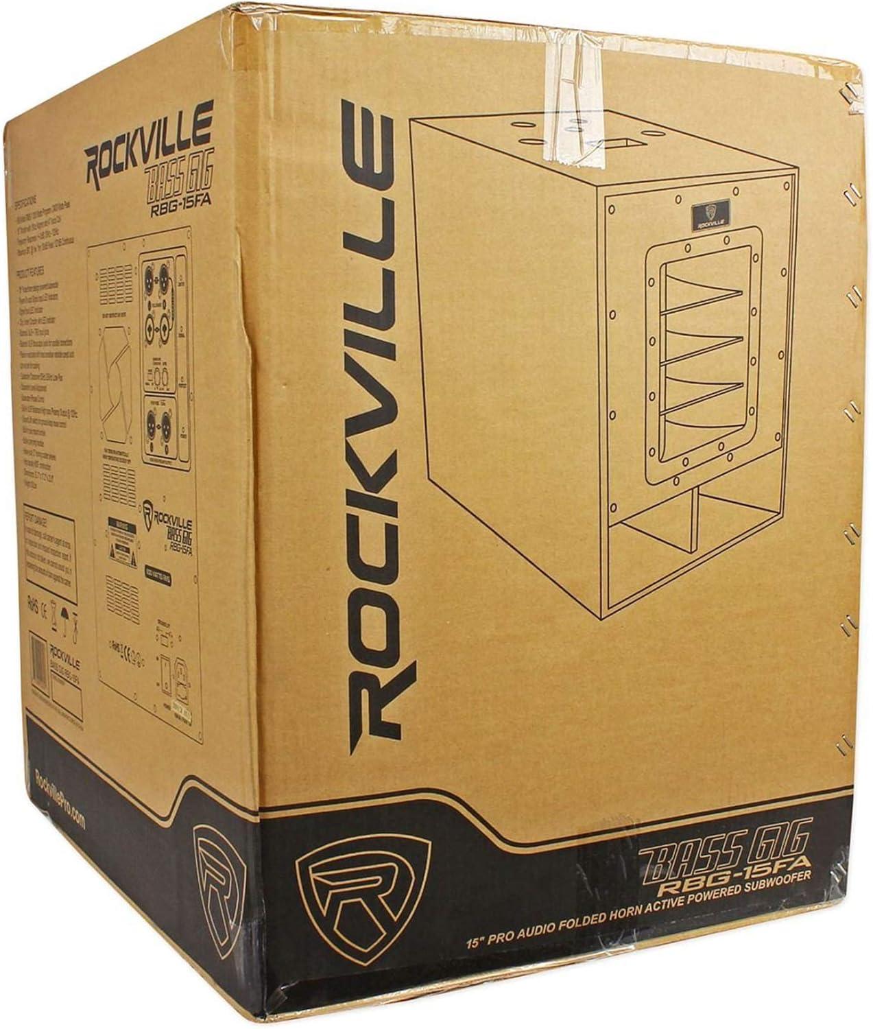 Package Includes: (1) RockvilIe RBG15FA 15″ 2400w Active Powered Pro Subwoofer Folded Horn PA/DJ Sub. (1) RockvilIe ISO 12-18 Isolation Platform Acoustic Riser Pad 12″/15″/18″ Subwoofers. Features: RockvilIe RBG15FA 15″ 2400W Pro Audio Folded Horn Active Powered Subwoofer. 600 Watts RMS / 1200 Watts Program / 2400 Watts Peak. 15″ Woofer with 110oz Magnet and 4″ Voice Coil. Frequency Response: (+/-3dB) 30Hz – 120Hz. Maximum SPL @ 1w / 1m: 130dB Peak / 127dB Continuous
