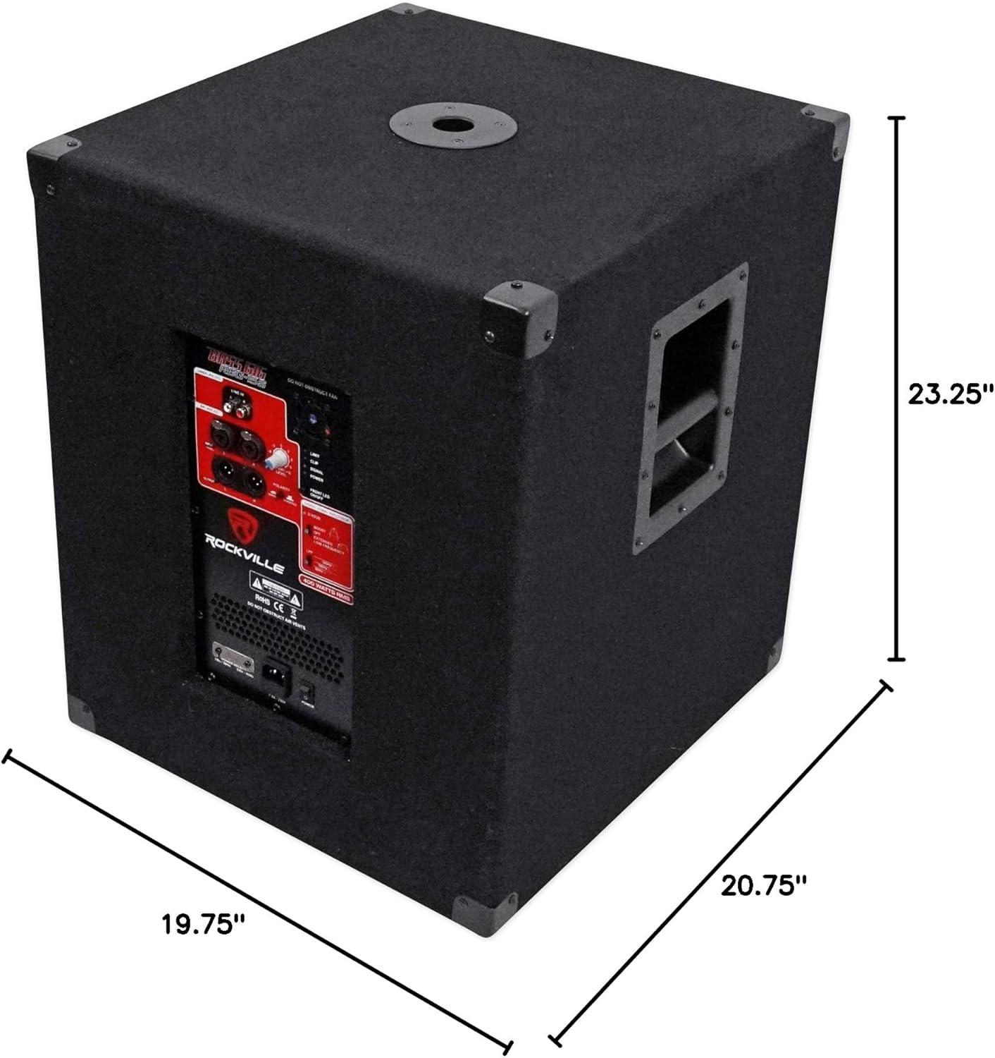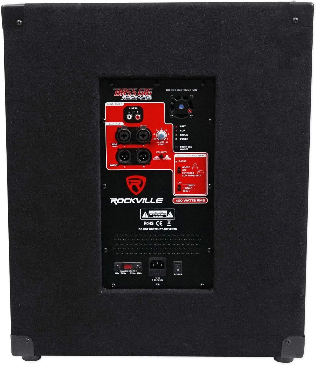 Rockville RBG15S Powered PA Subwoofer with Casters, 15″, 1600W, Deep Bass, DSP, Limiter, Adjustable Crossover, Pole Mount, Perfect for Live Events