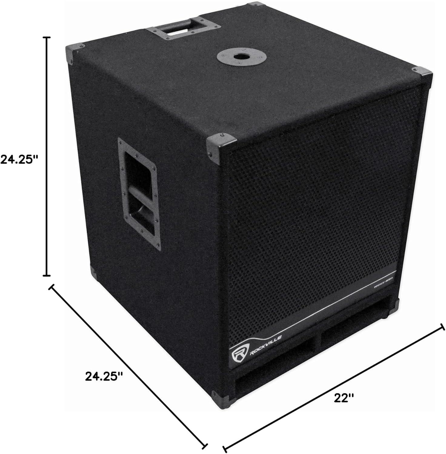 Package Includes: (1) RockvilIe RBG18S 18″ 2000 Watt Active Powered PA Subwoofer w/DSP+Limiter Pro/DJ. (1) RockvilIe ISO 12-18 Isolation Platform Acoustic Riser Pad 12″/15″/18″ Subwoofers. Features: RockvilIe RBG18S 18″ 2000 Watt Active Powered PA Subwoofer. 500 Watts RMS / 1000 Watts Program / 2000 Watts Peak. 18″ Woofer with 120oz Magnet and 4 Voice Coil. Frequency Response: (+/-3dB) 29Hz – 150Hz. Maximum SPL @ 1w / 1m: 125dB Peak / 120dB Continuous