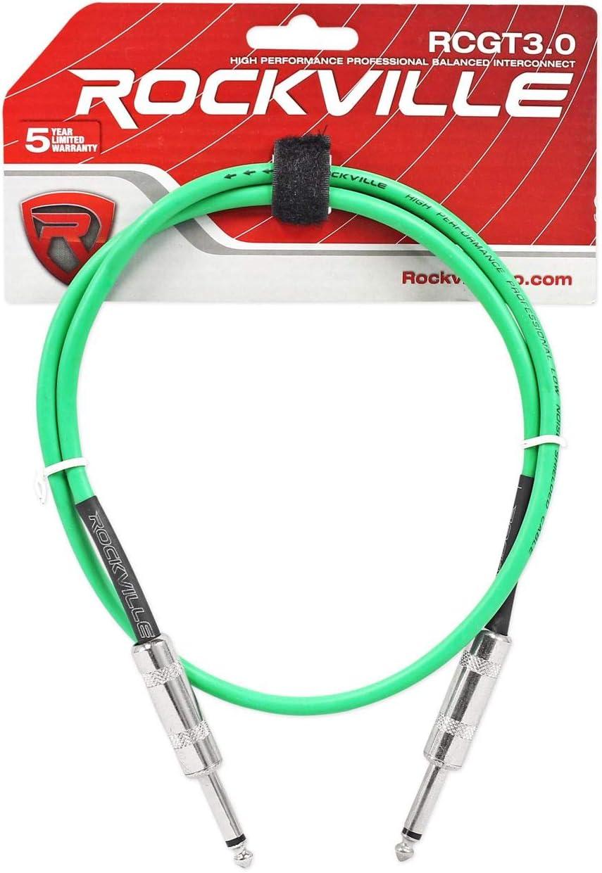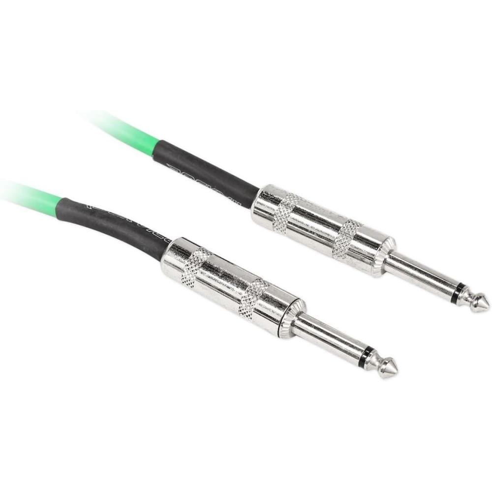 The Rockville RCGT3G 3-foot 1/4'' TS to 1/4'' TS Instrument Guitar Cable in green is designed to deliver clear audio and long-lasting reliability. Featuring 24 AWG 100% copper conductors, this cable ensures minimal signal loss for accurate sound reproduction. Its 90% OFC braided shielding reduces electromagnetic and radio frequency interference, keeping your tone clean and consistent. Nickel-plated connectors provide strong, corrosion-resistant connections, while the flexible build offers durability for stage, studio, or rehearsal use. Compact and easy to manage, the 3-foot length is perfect for pedalboards or tight setups, making it a dependable choice for musicians who value performance and reliability.