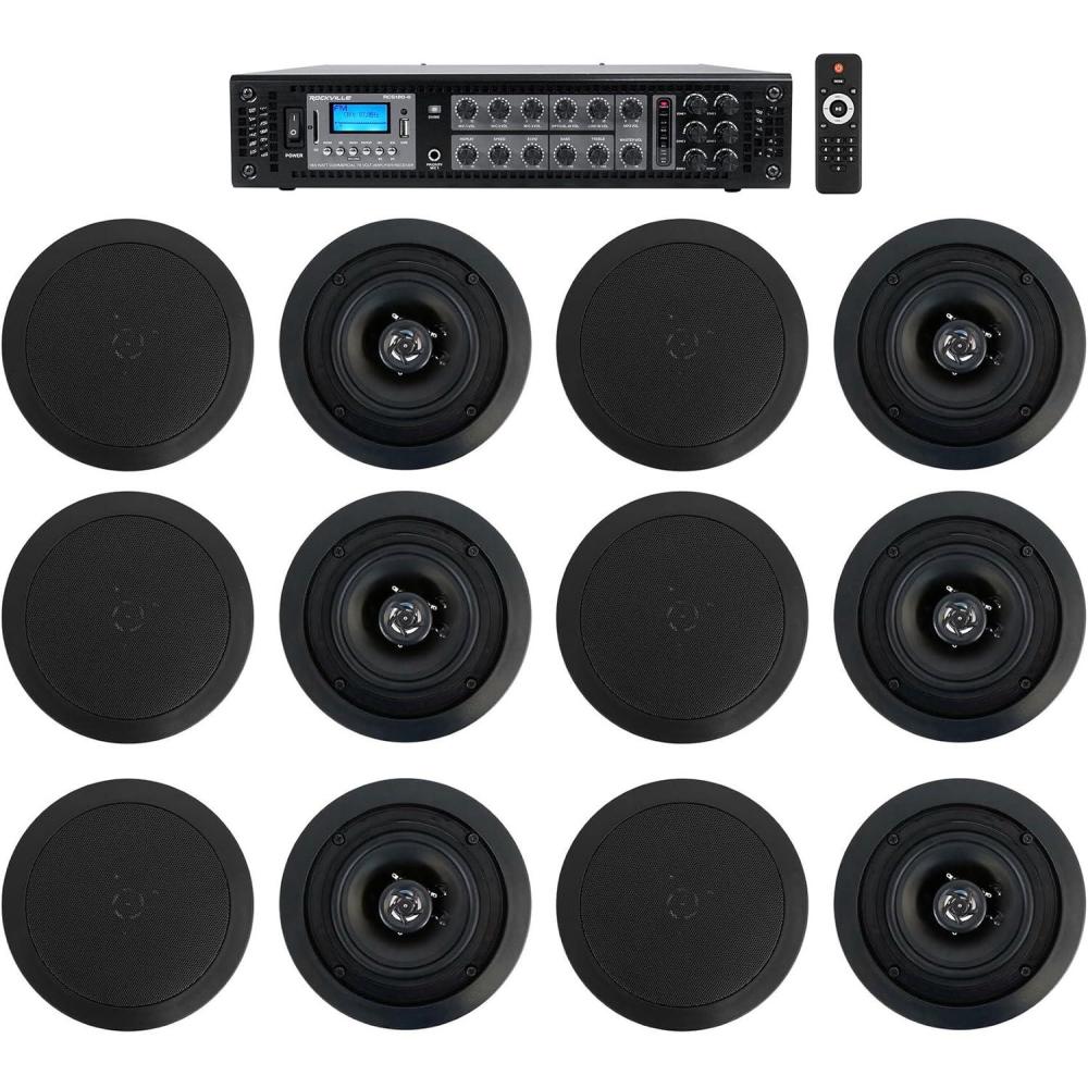Rockville RCS350-6 Bundle: 350-Watt 6-Zone 70V Multi-Room Amplifier with Bluetooth, (10) Pair CC525T Black 5.25 in Ceiling Speakers for Bedroom/Living Room/Bathroom, 11-Items